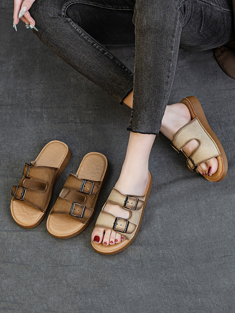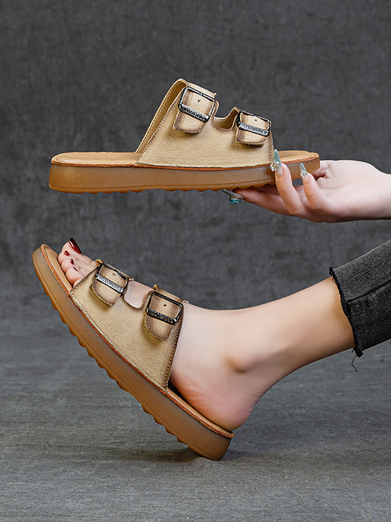 Women Summer Casual Genuine Leather Flat Slippers
