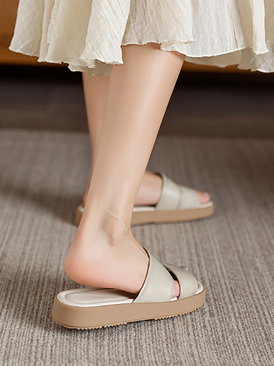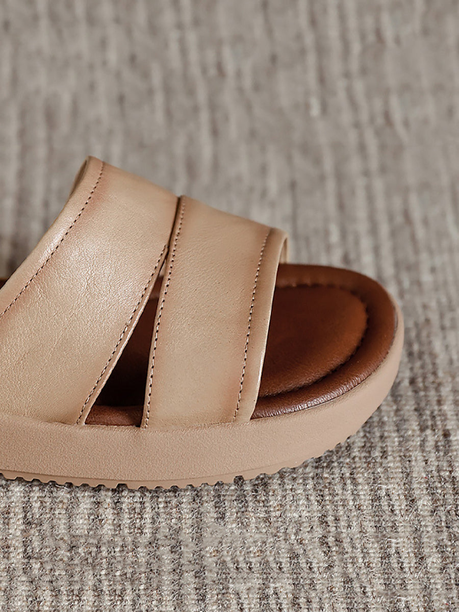 Women Summer Casual Leather Flat Slippers