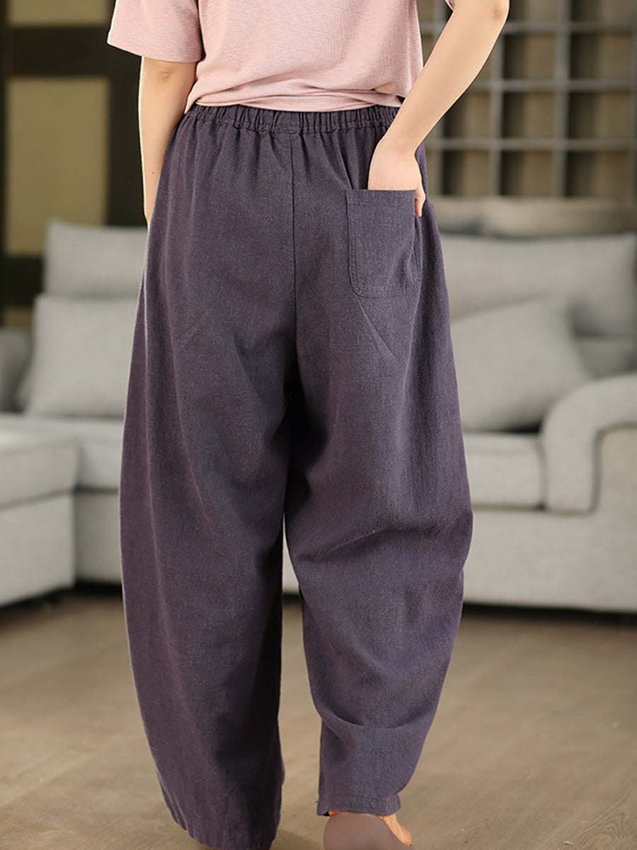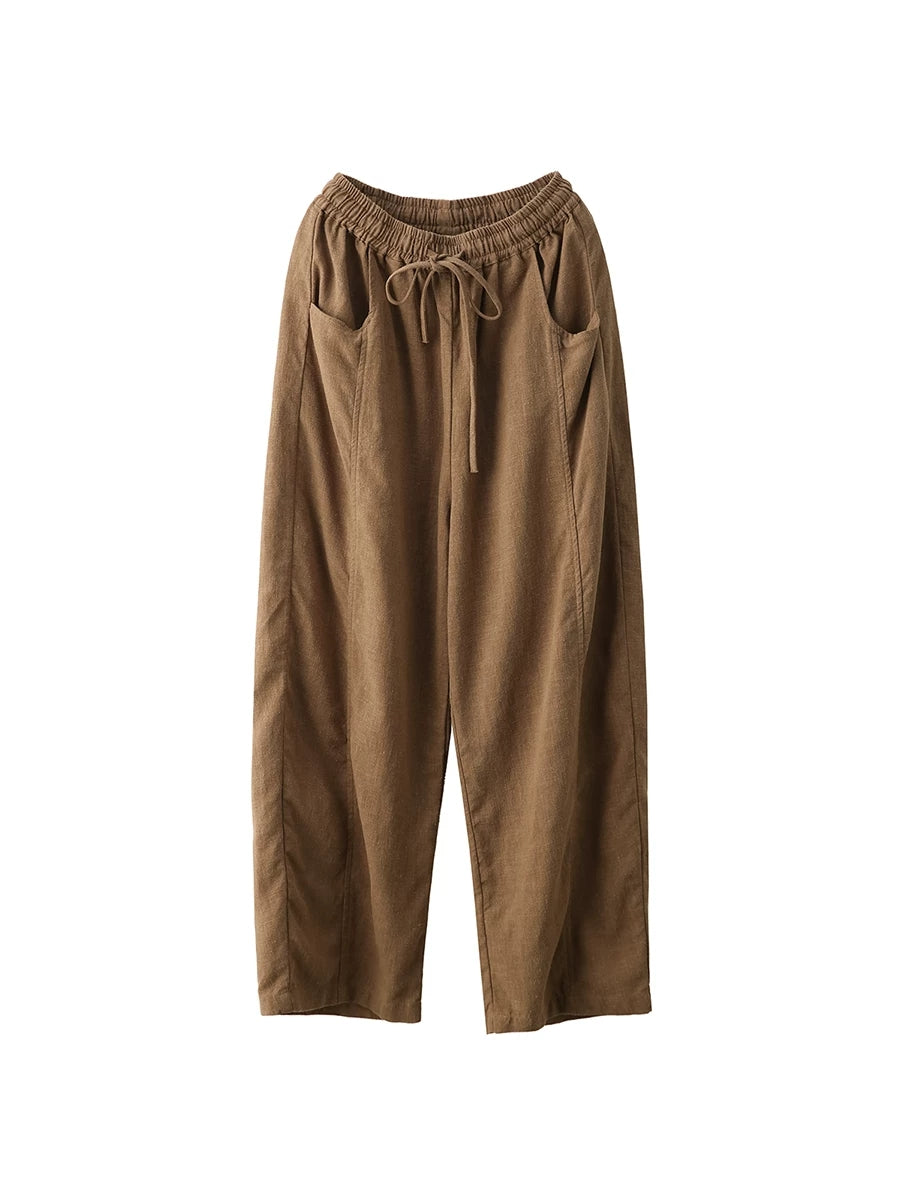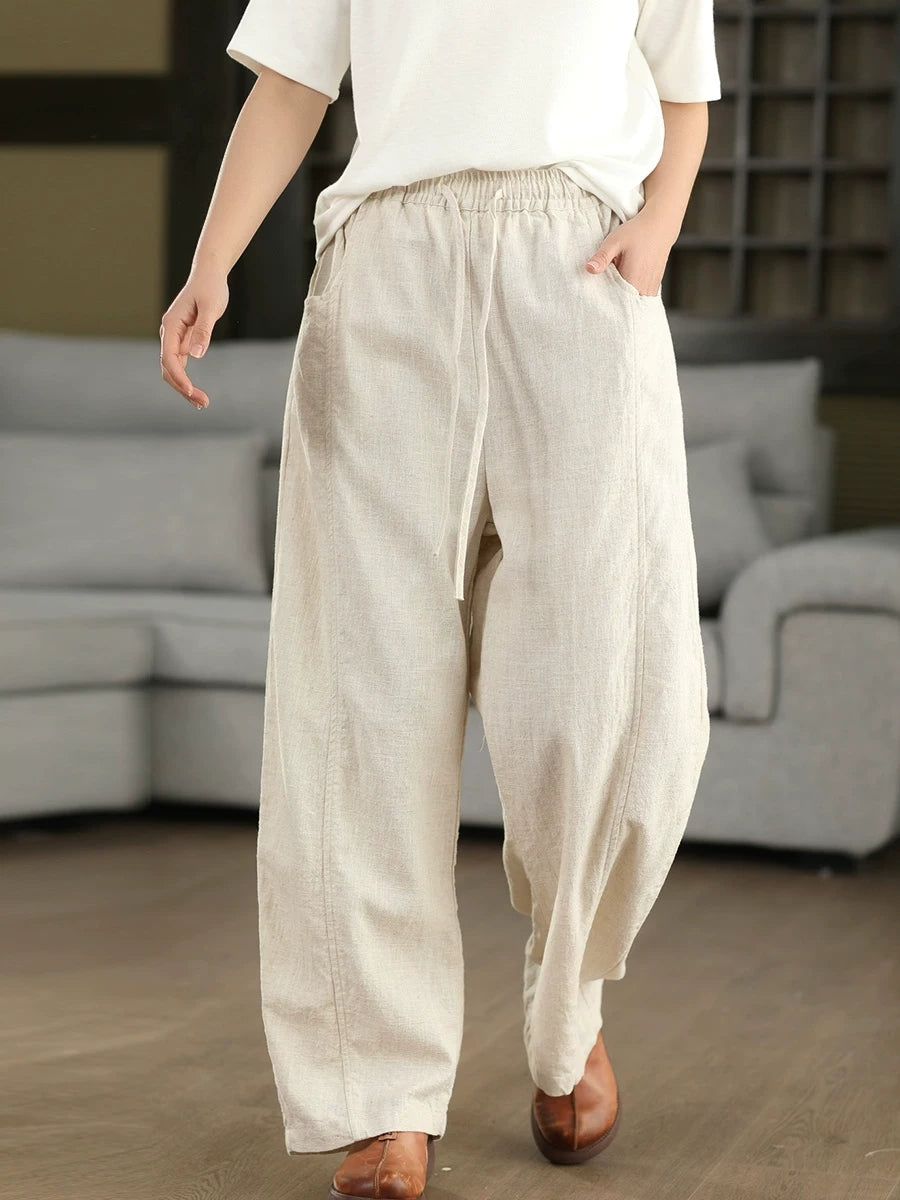 Women Summer Casual Pure Color 100%Linen Pants