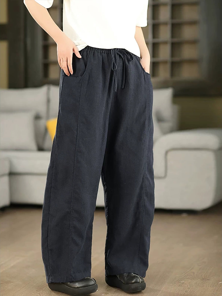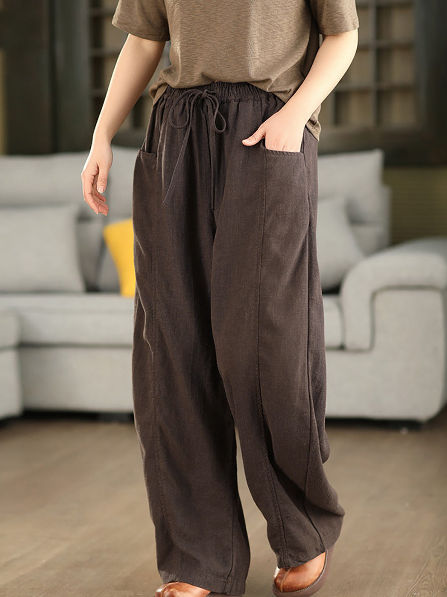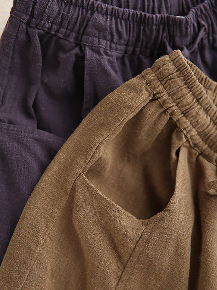 Women Summer Casual Pure Color 100%Linen Pants