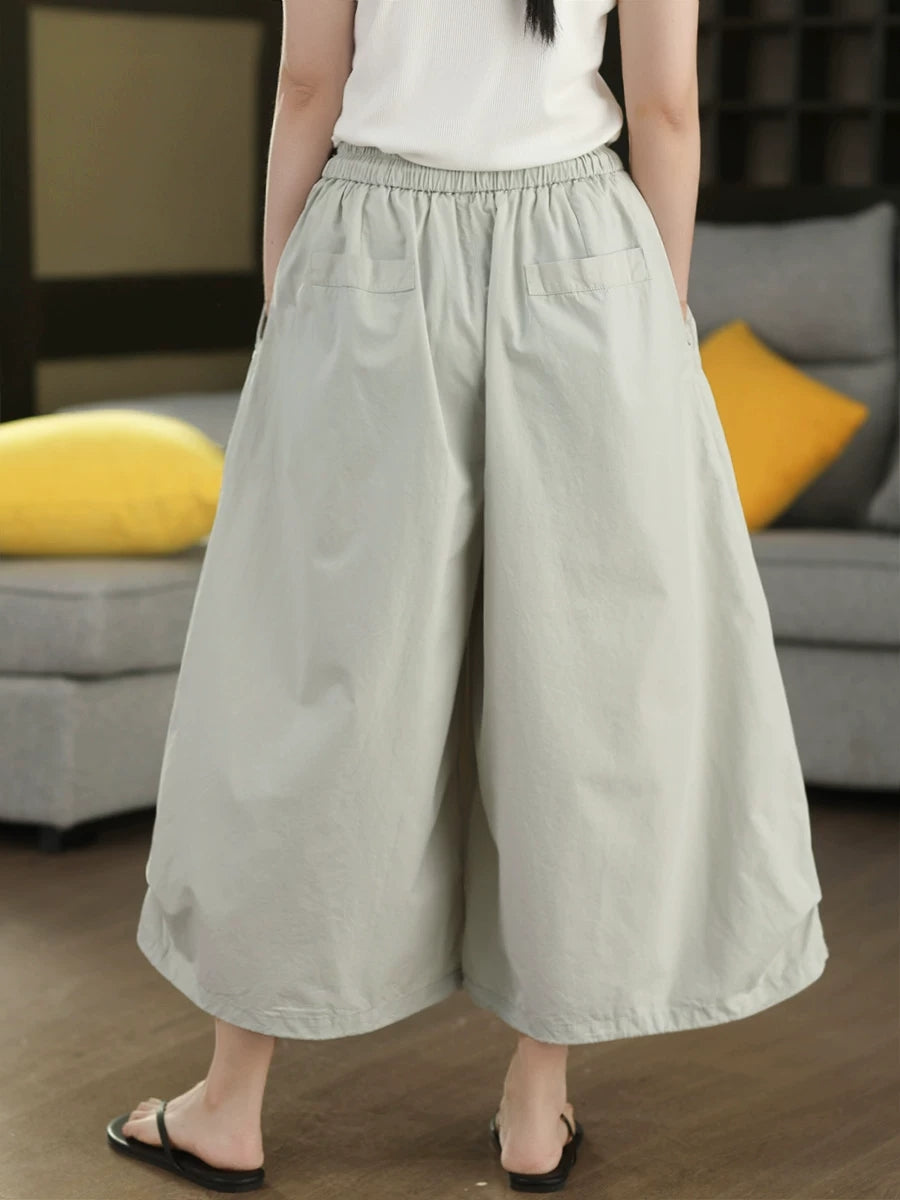 Women Summer Casual Pure Color Cotton Wide-leg Pants