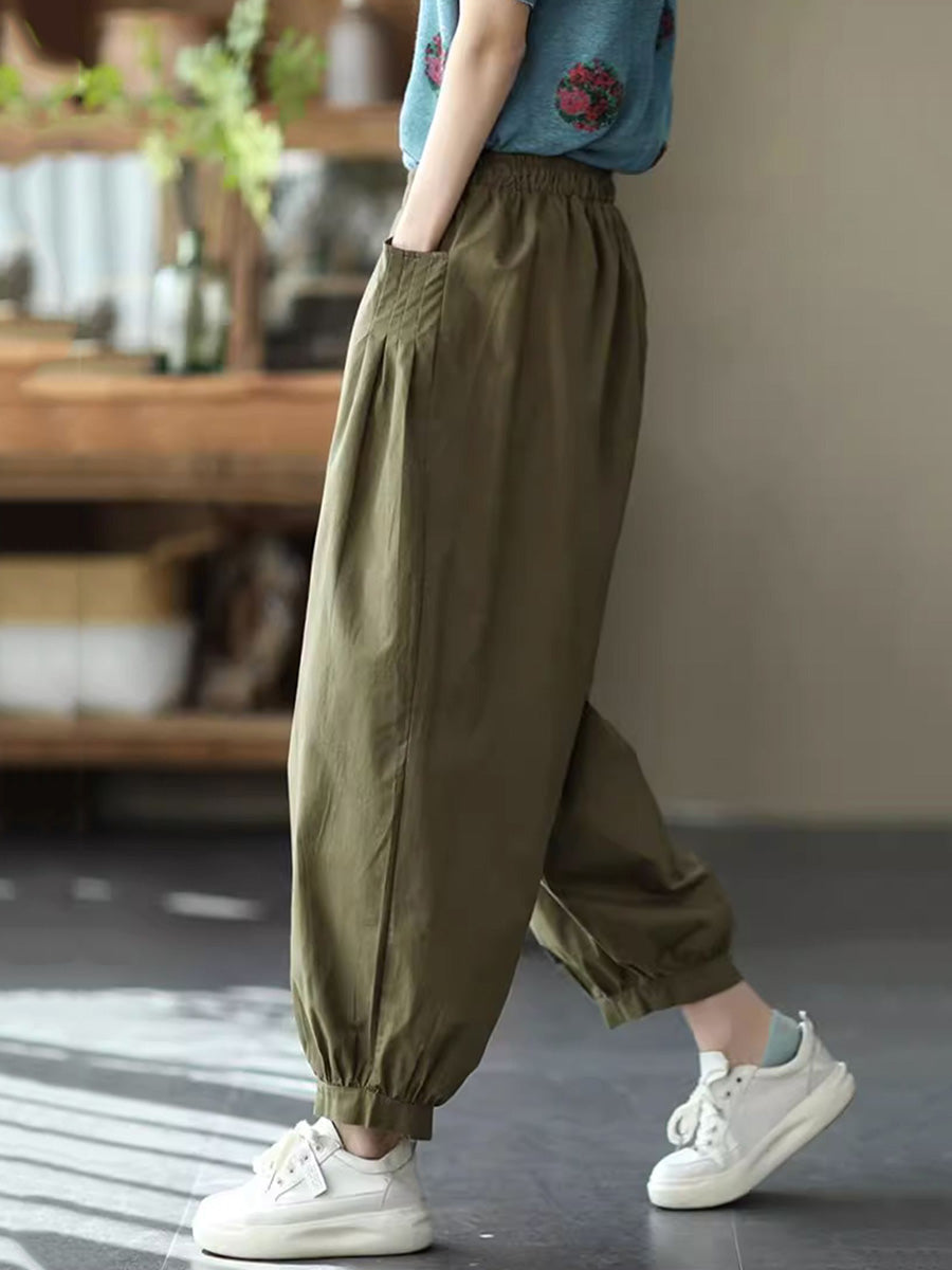 Women Summer Casual Pure Color Harem Pants