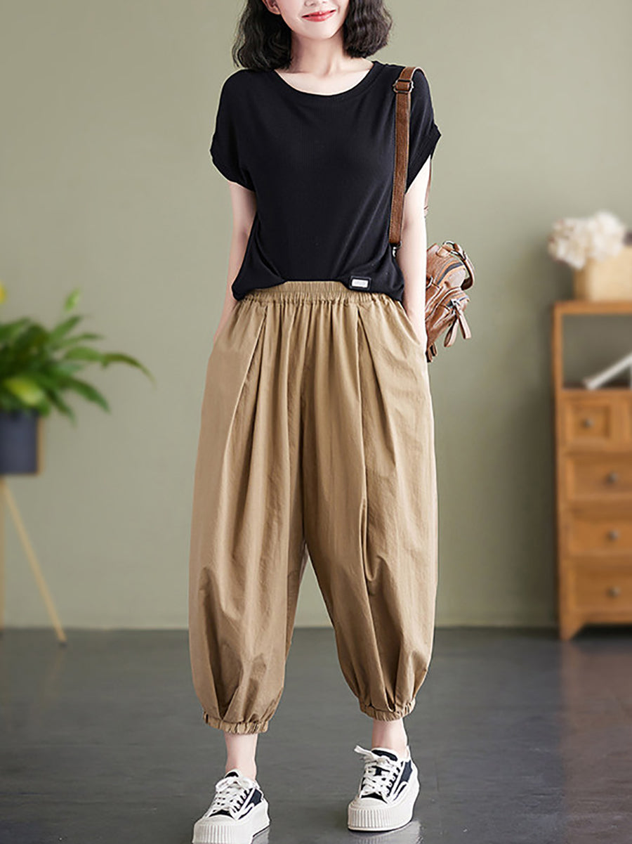 Women Summer Casual Pure Color Harem Pants