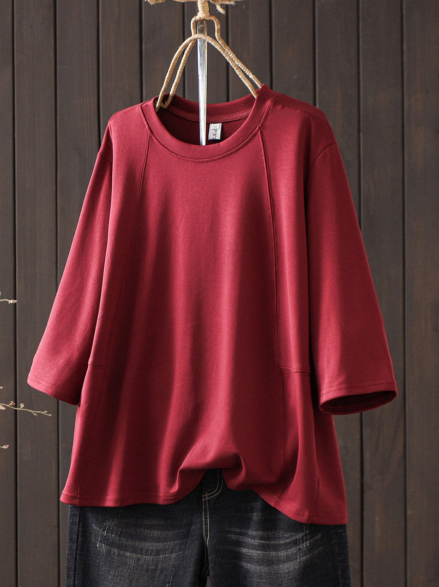 Women Summer Casual Pure Color O-Neck T-Shirt