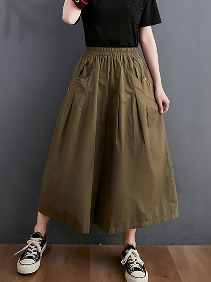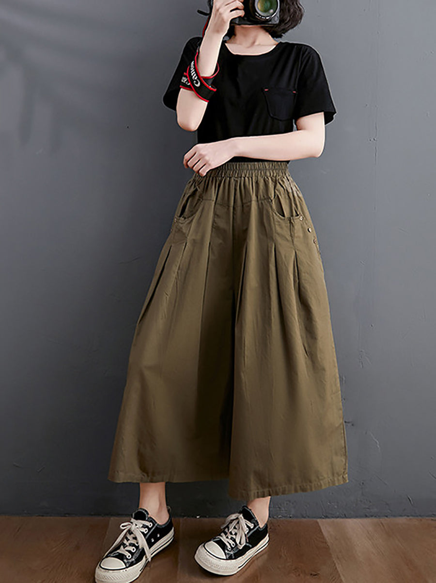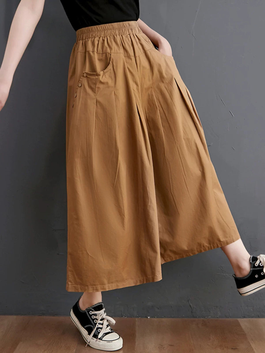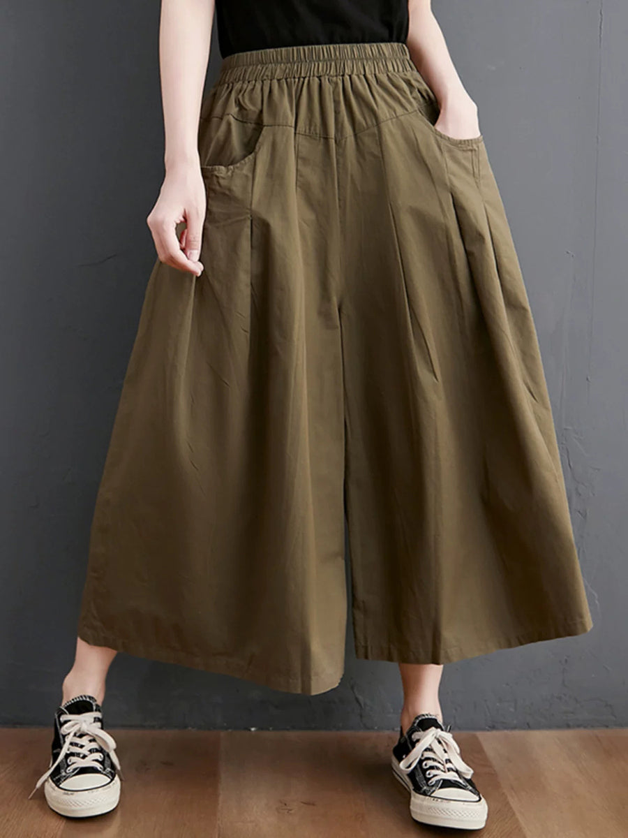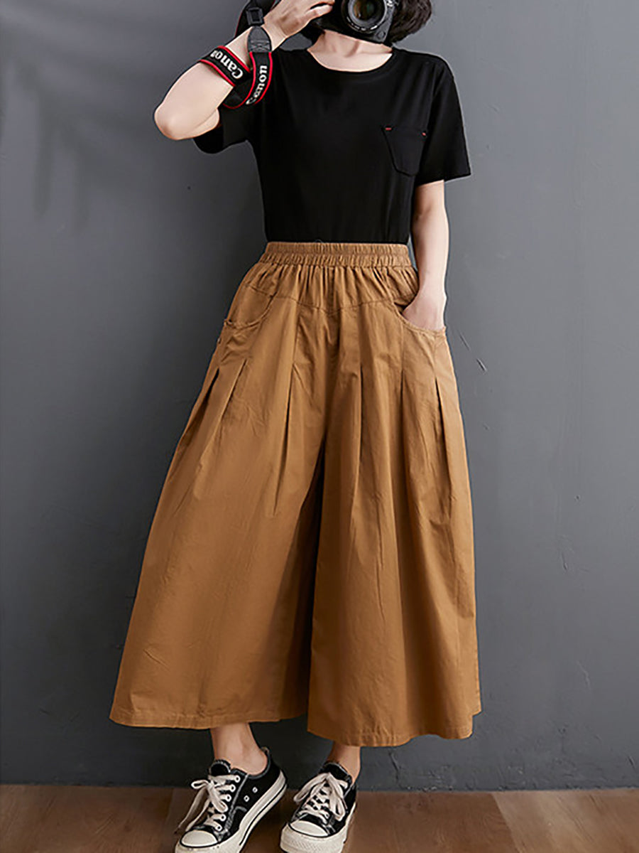 Women Summer Casual Pure Color Wide-leg Pants