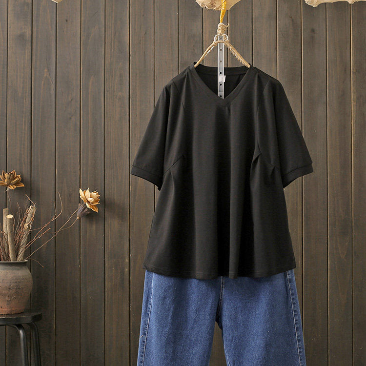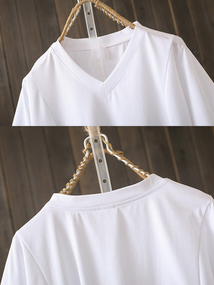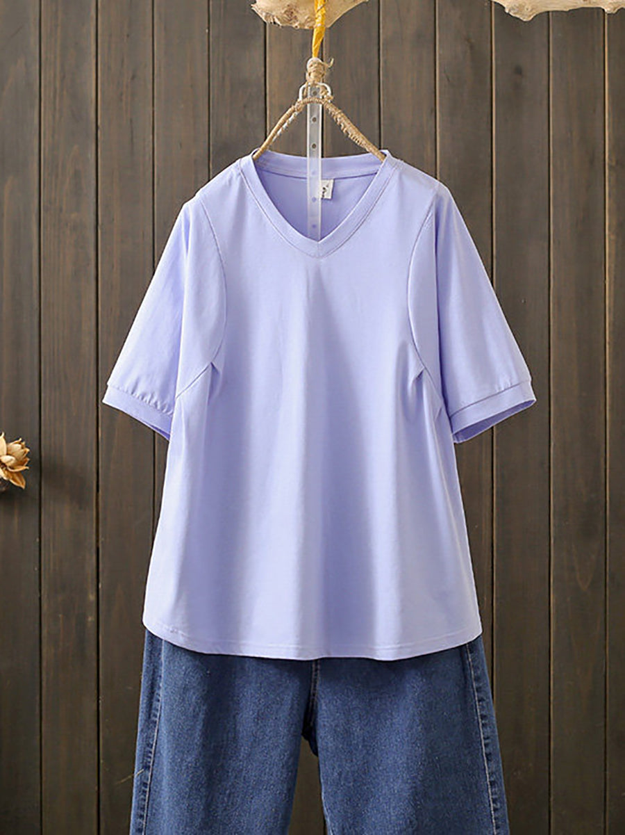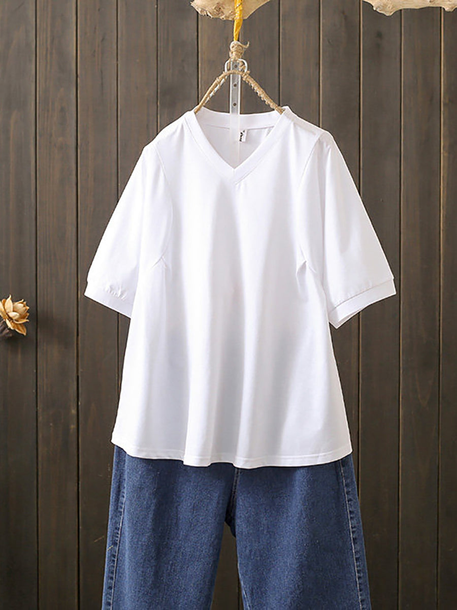 Women Summer Casual V-Neck Cotton T-Shirt