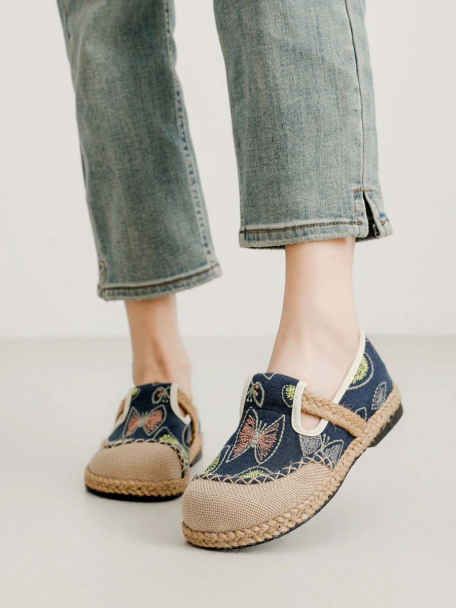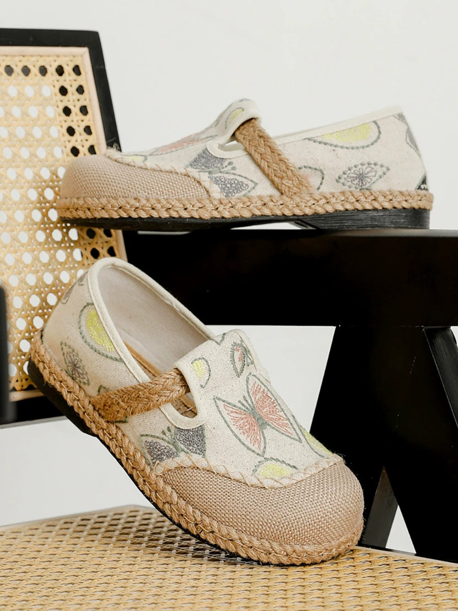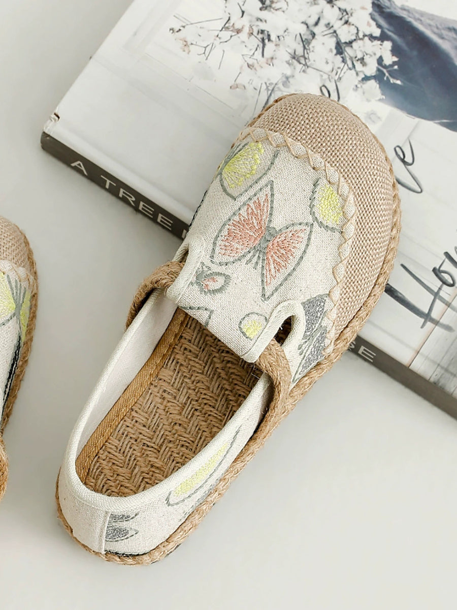 Women Summer Ethnic Embroidery Canvas Linen Shoes