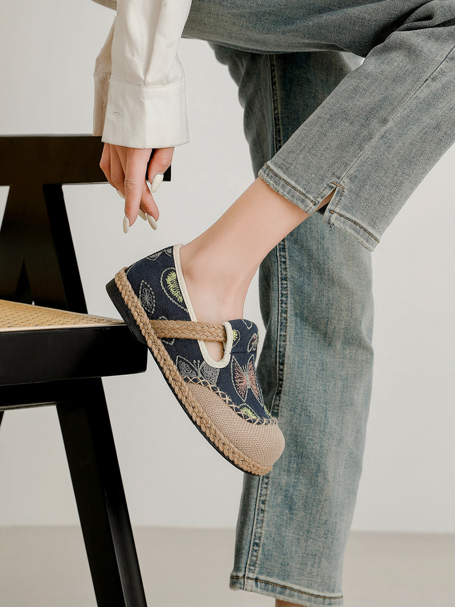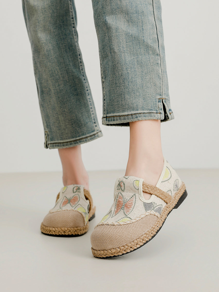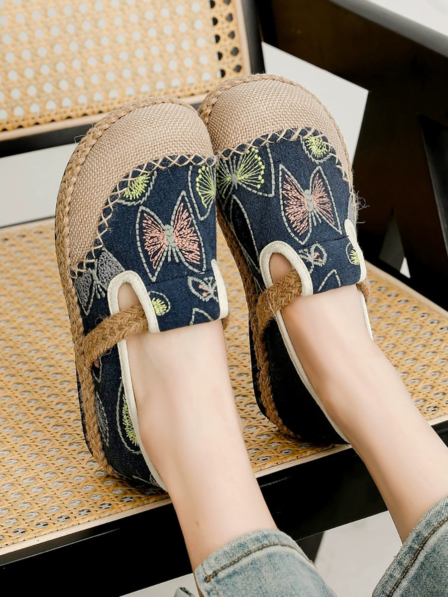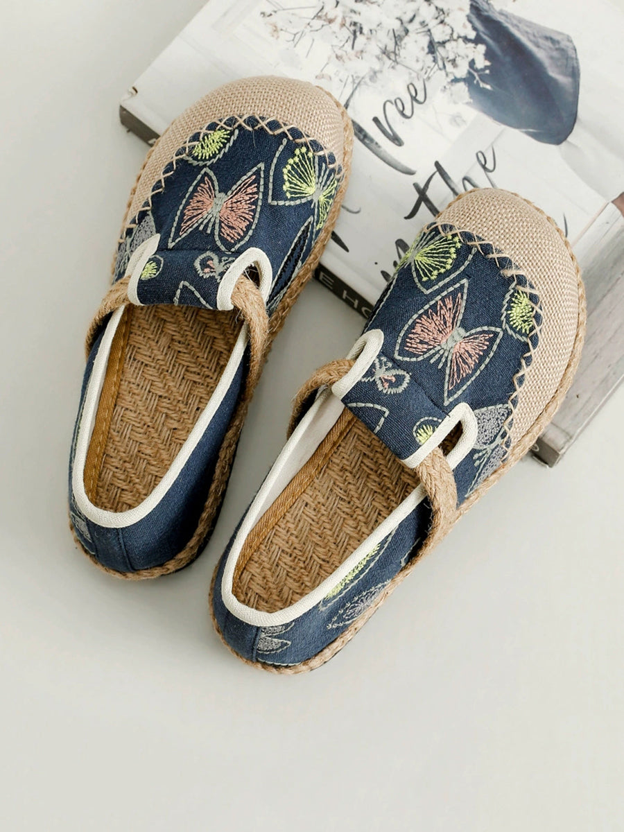 Women Summer Ethnic Embroidery Canvas Linen Shoes
