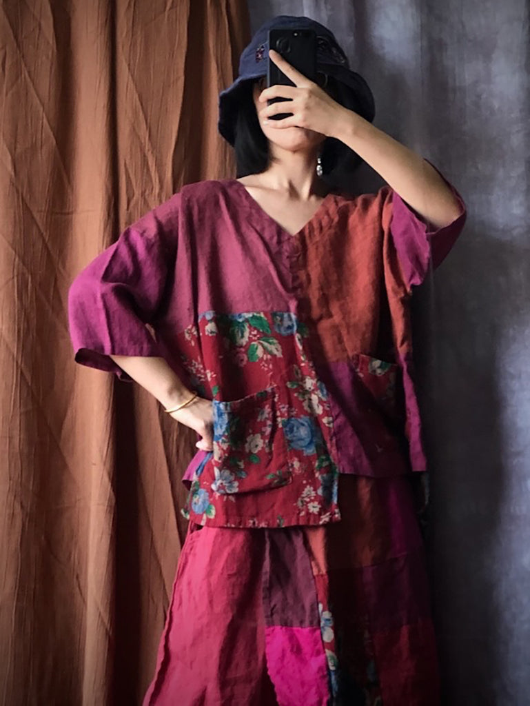 Women Summer Ethnic Irregular Spliced Linen Shirt