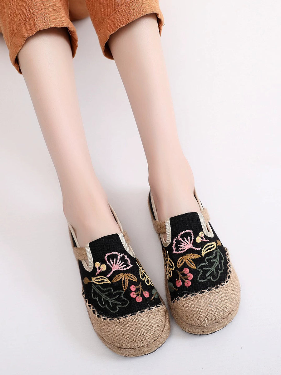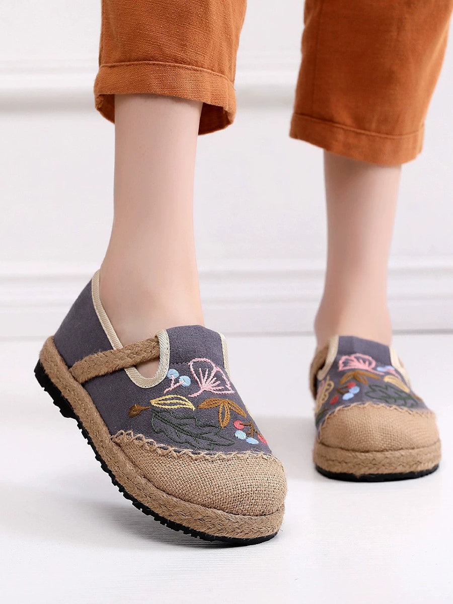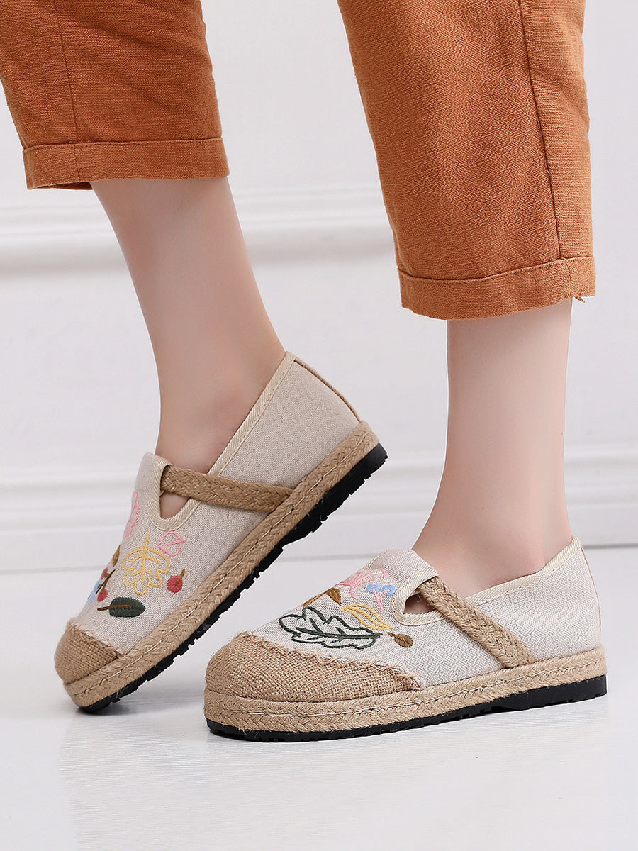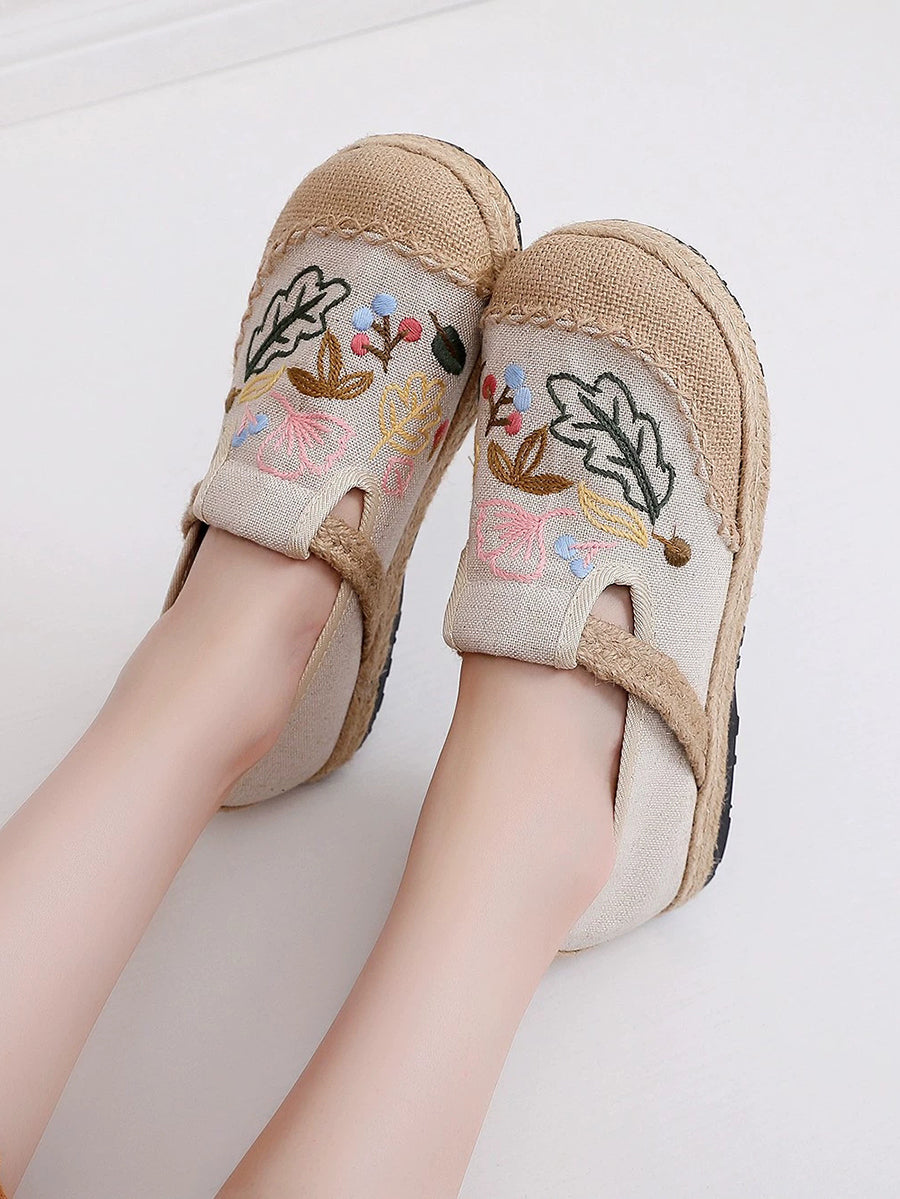 Women Summer Flower Embroidery Linen Shoes