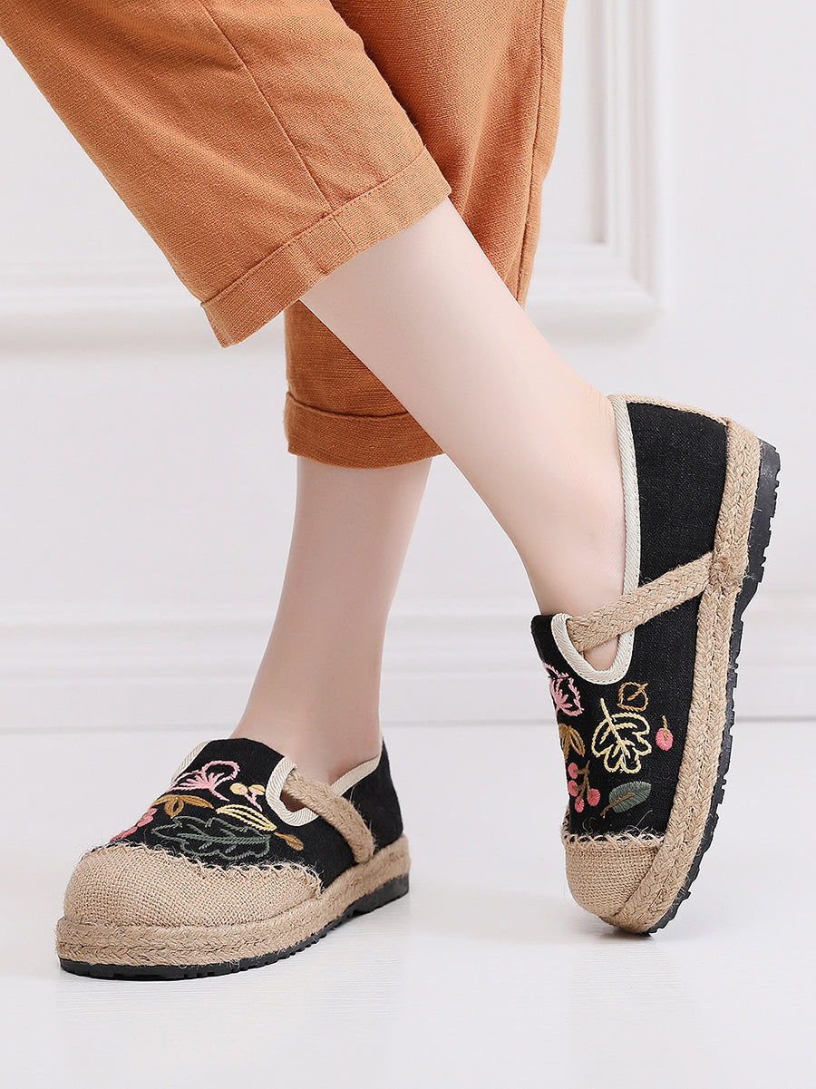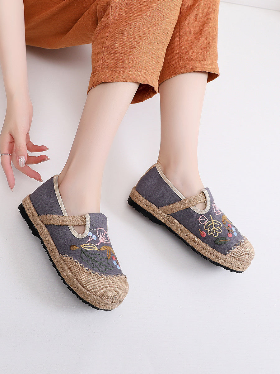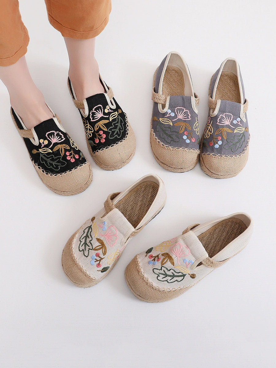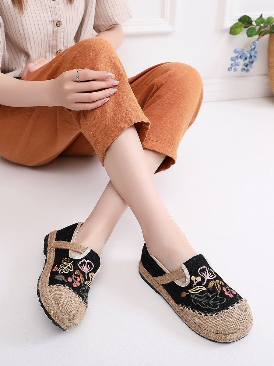 Women Summer Flower Embroidery Linen Shoes