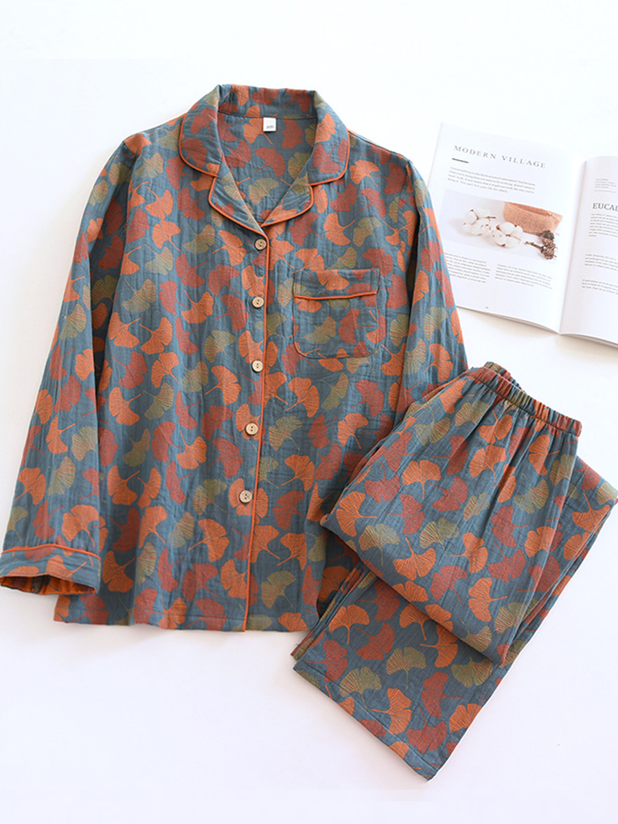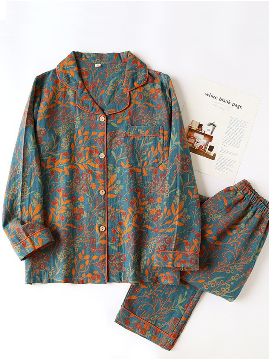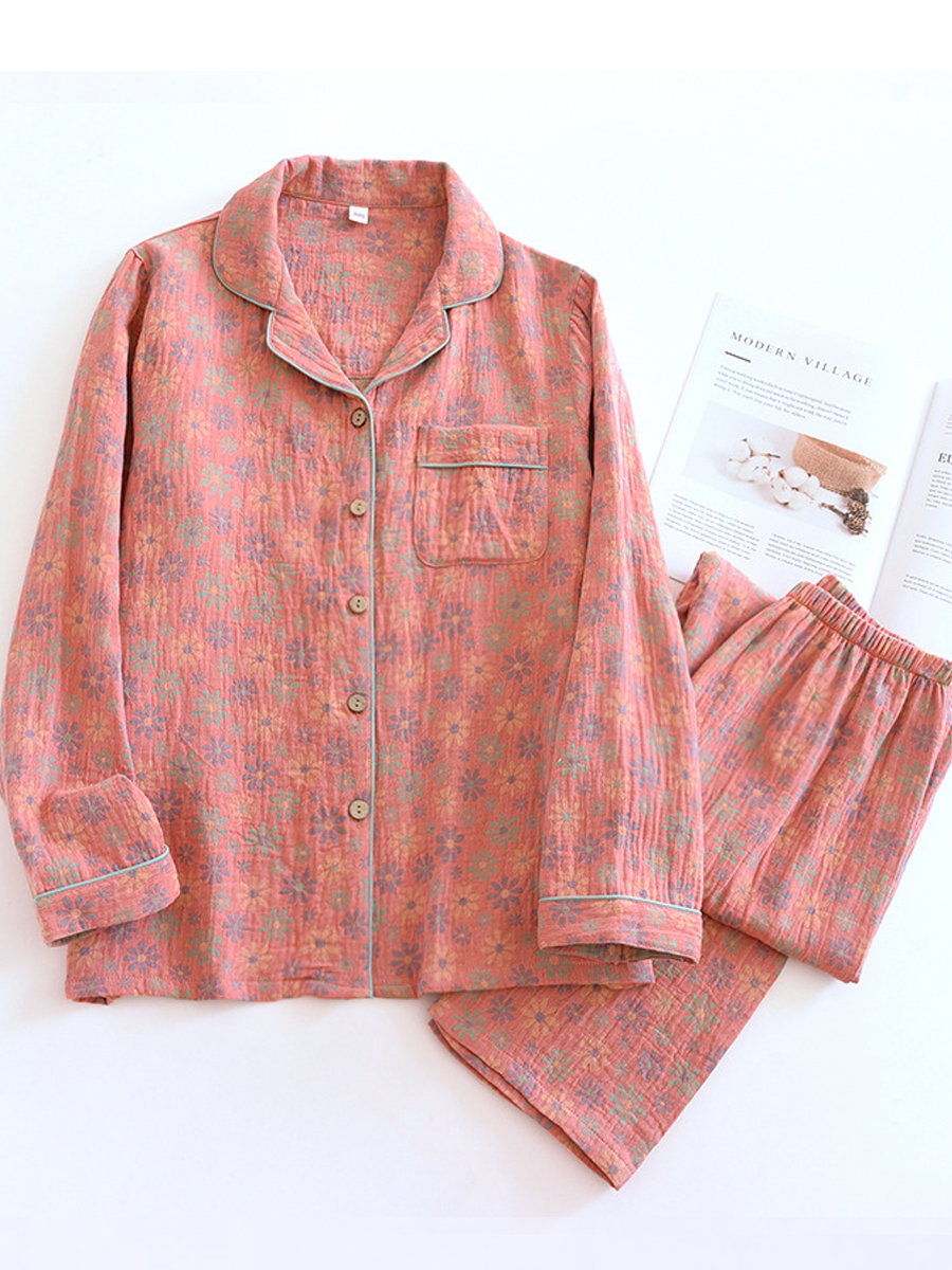 Women Summer Flower Jacquard Gauze Pajamas Set