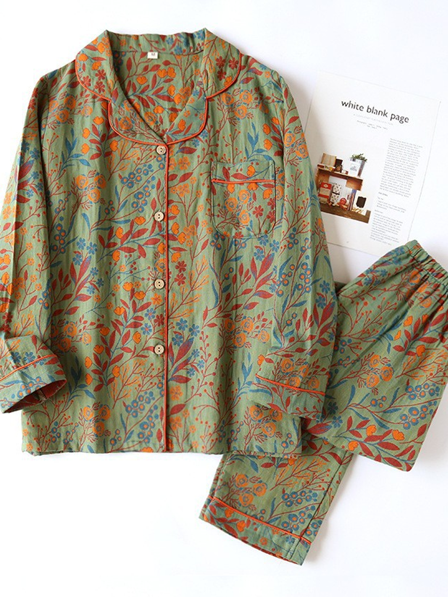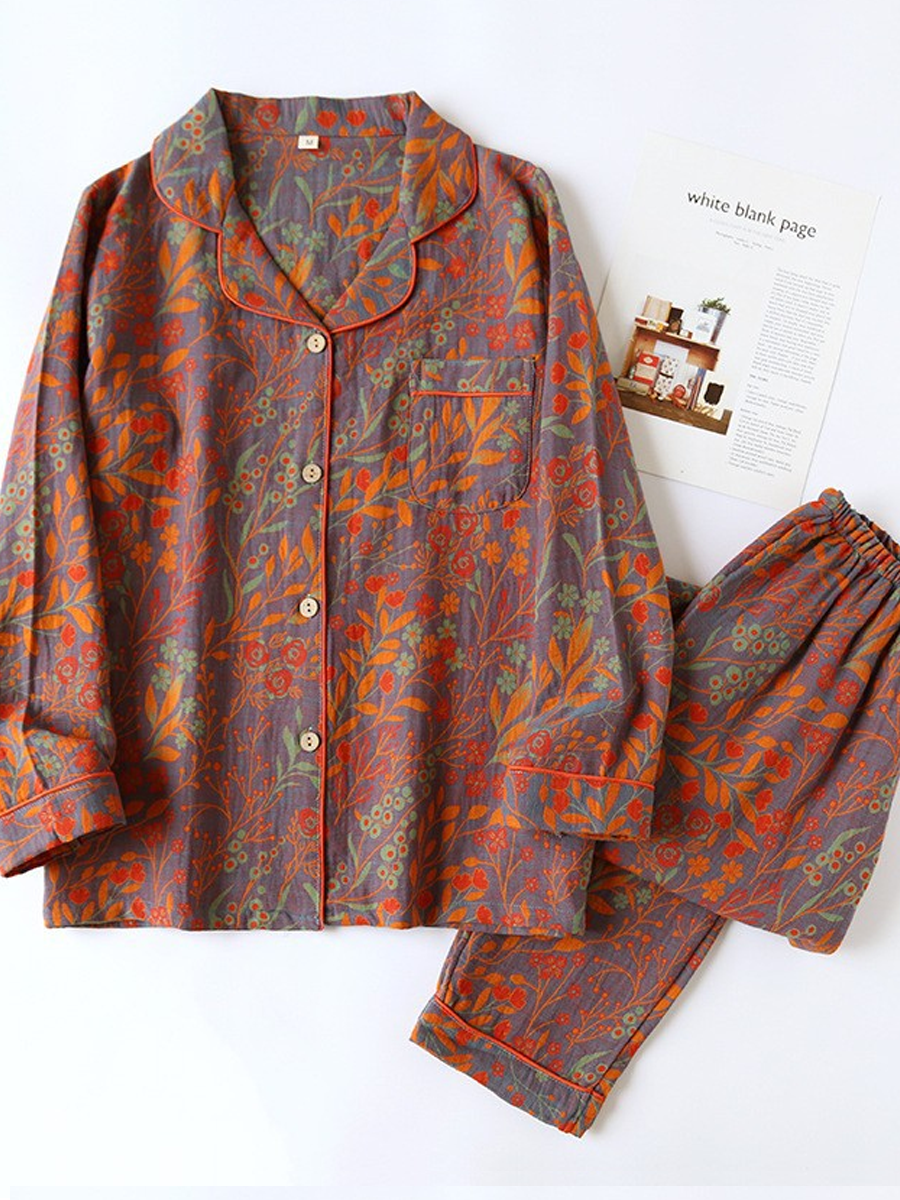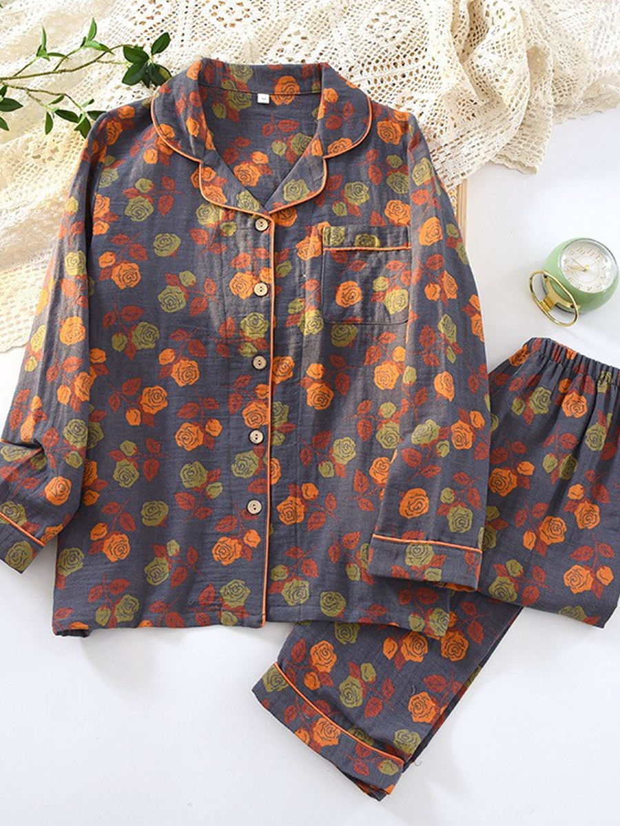 Women Summer Flower Jacquard Gauze Pajamas Set