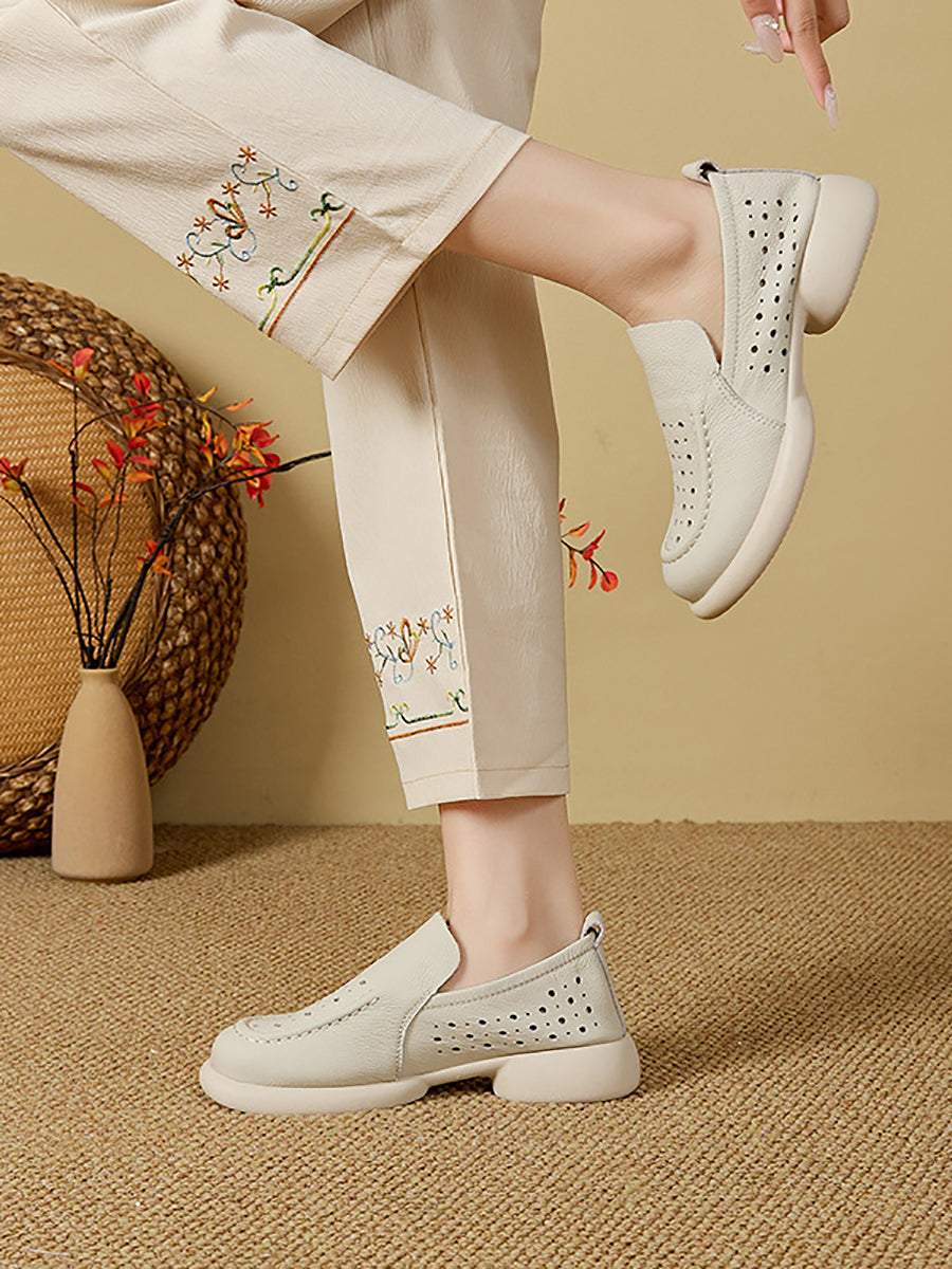 Women Summer Genuine Leather Low Heel Shoes