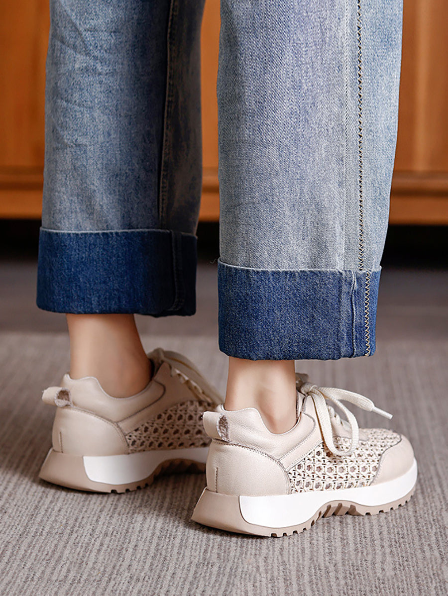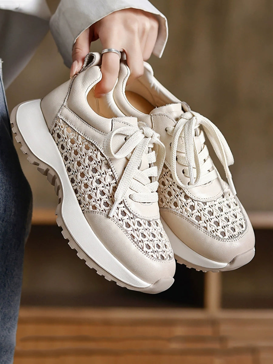 Women Summer Hollow Out Leather Sport Shoes