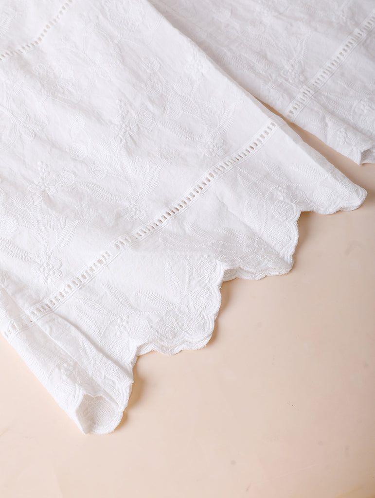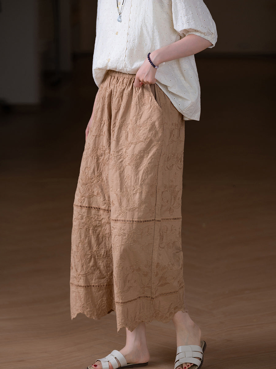 Women Summer Retro Embroidery 100%Cotton Straight Pants