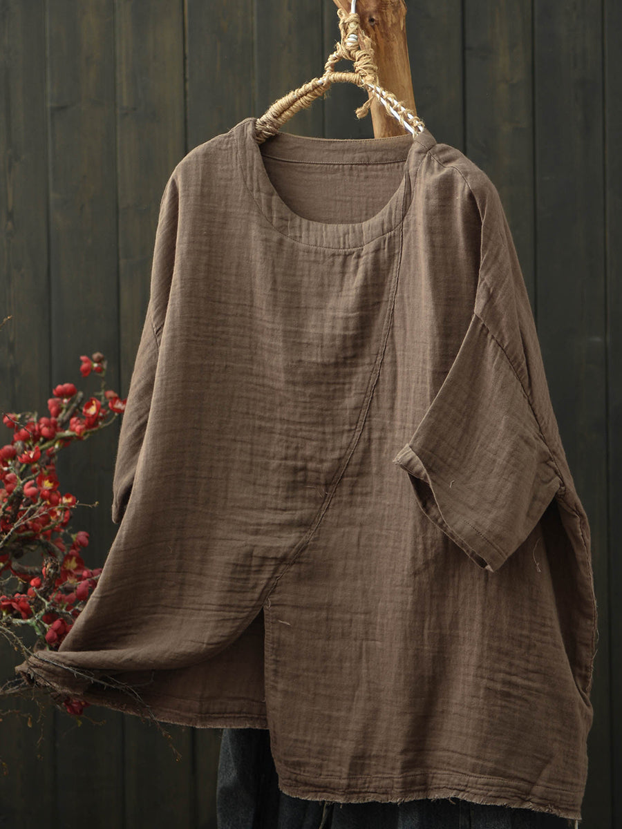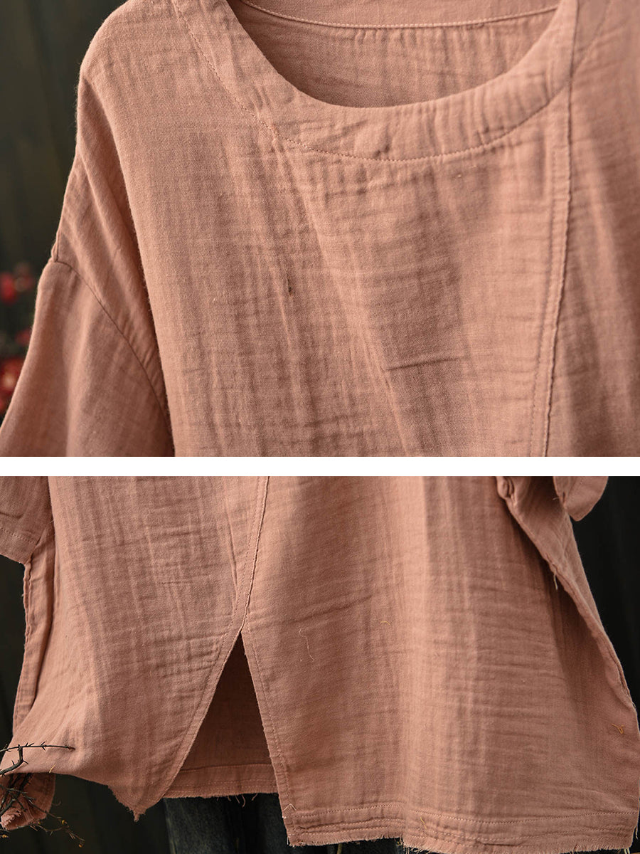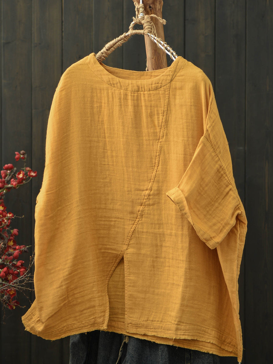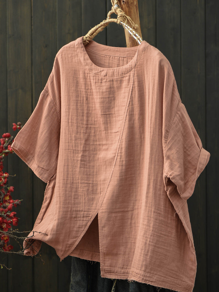 Women Summer Retro Split Hem Cotton T-Shirt