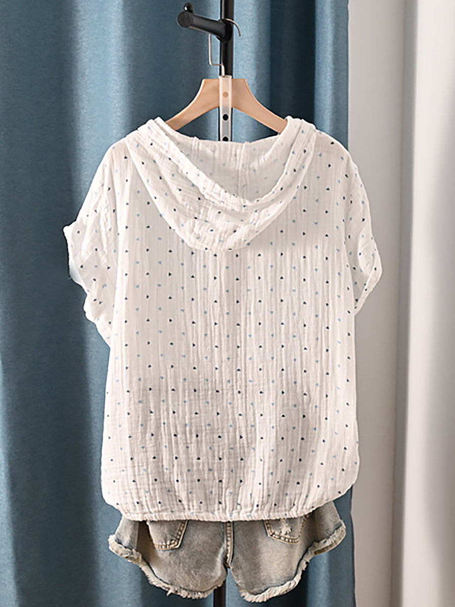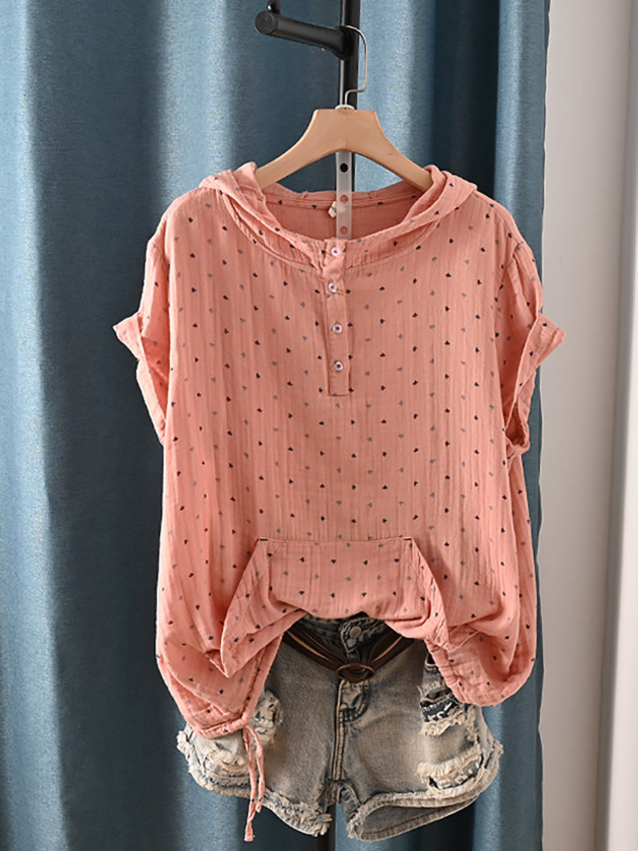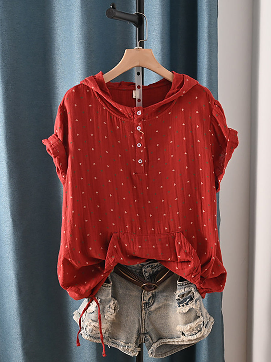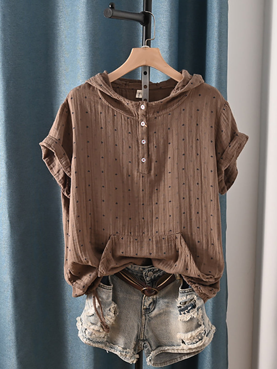 Women Summer Retro Triangle 100%Cotton Hoodie