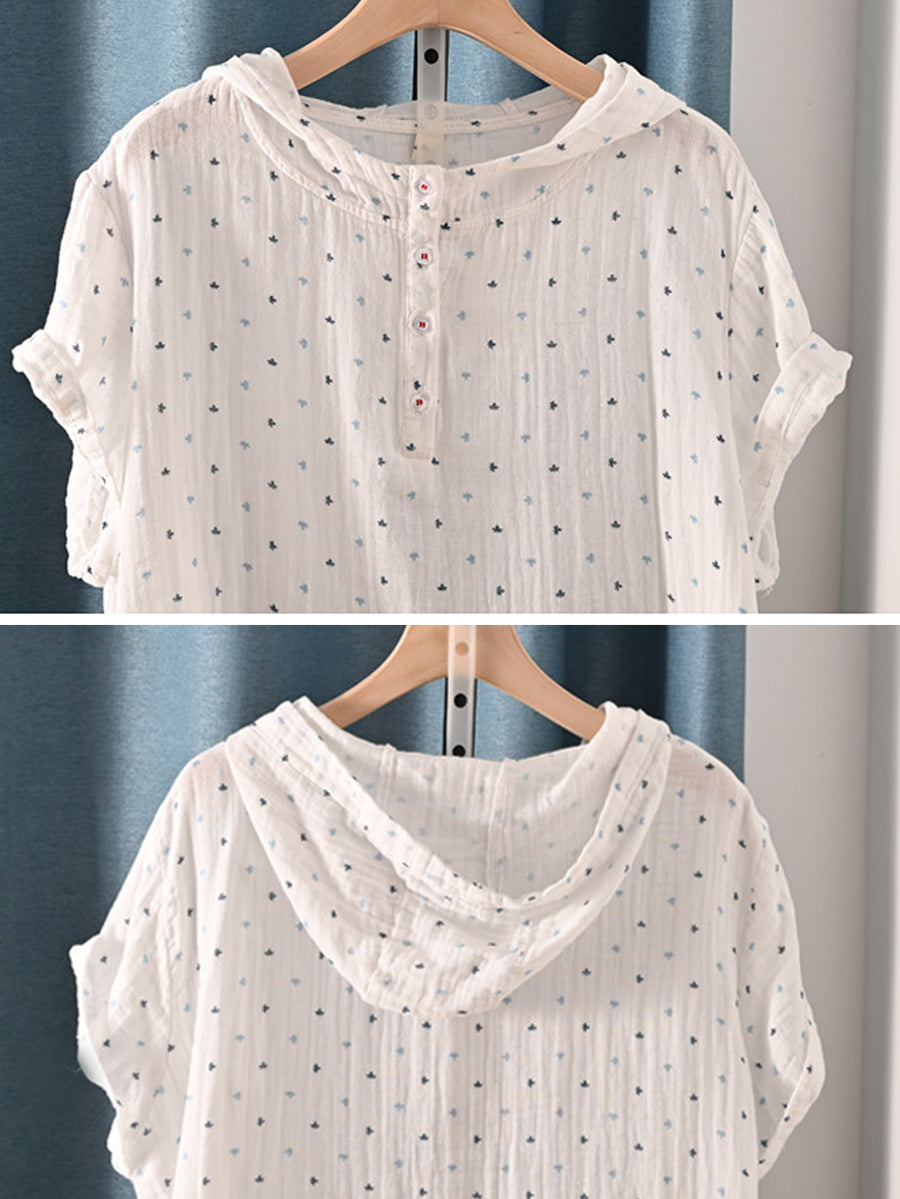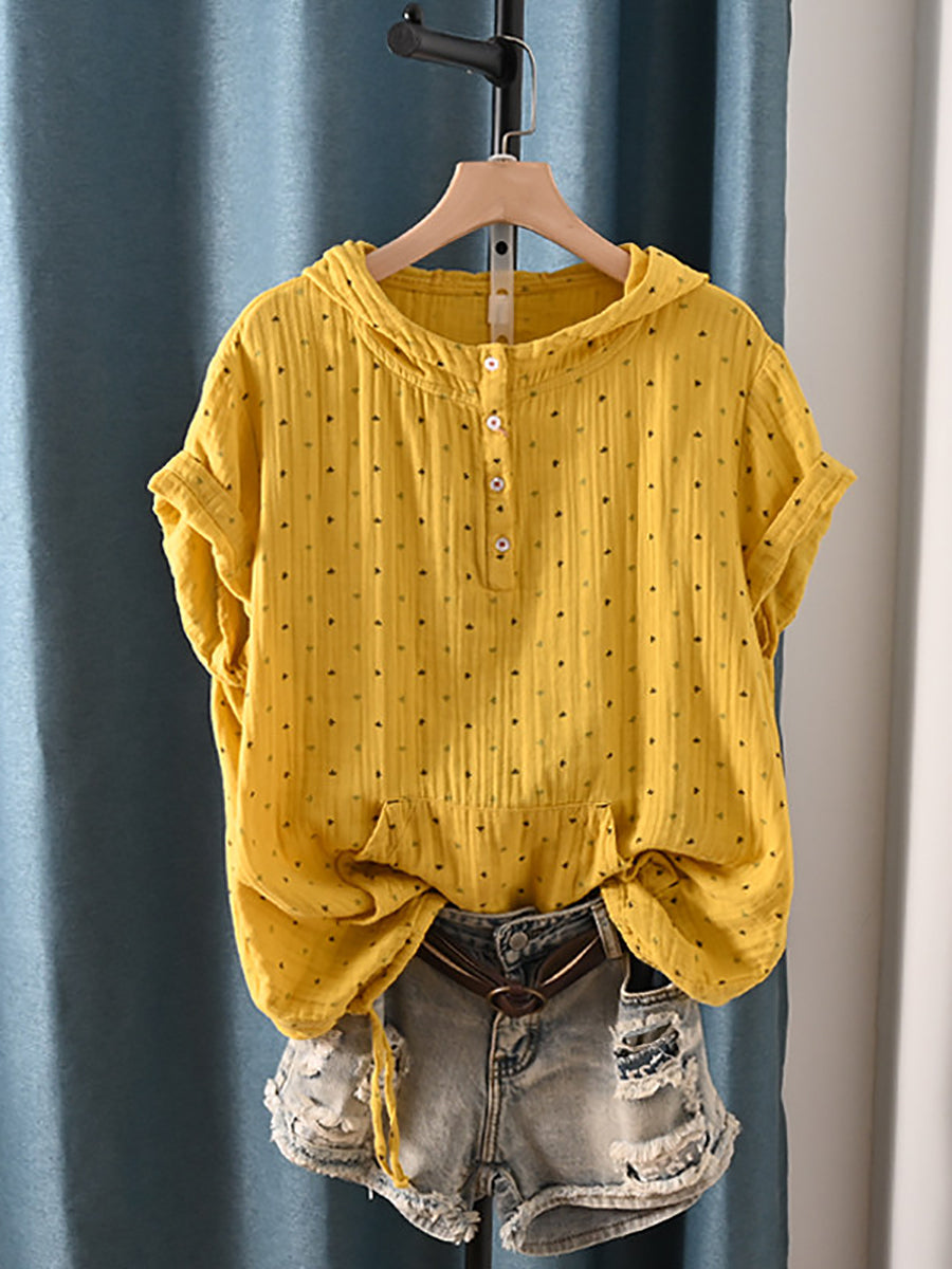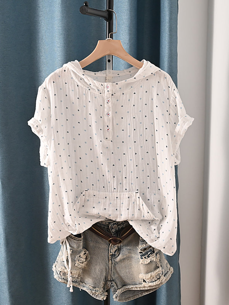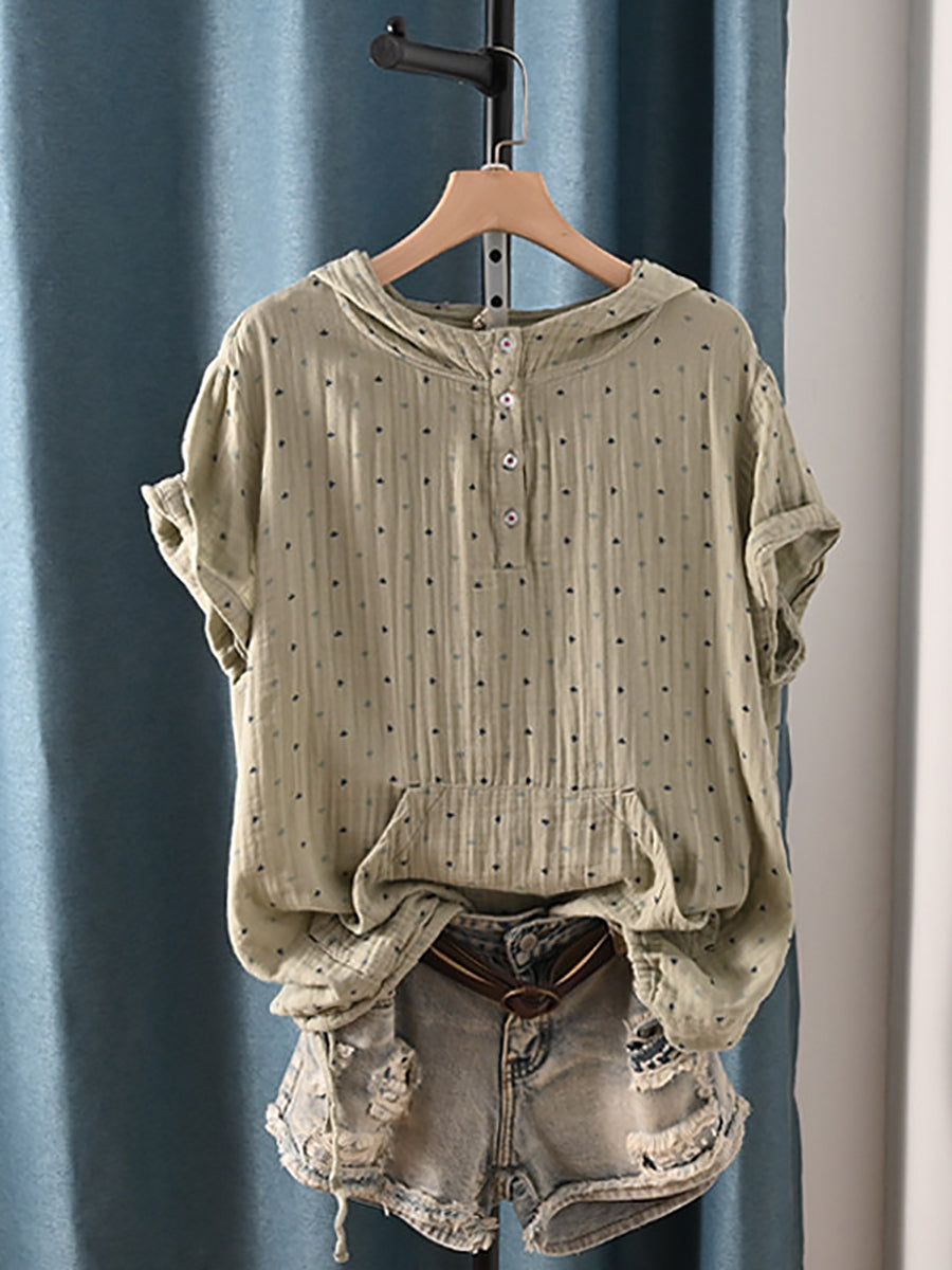 Women Summer Retro Triangle 100%Cotton Hoodie