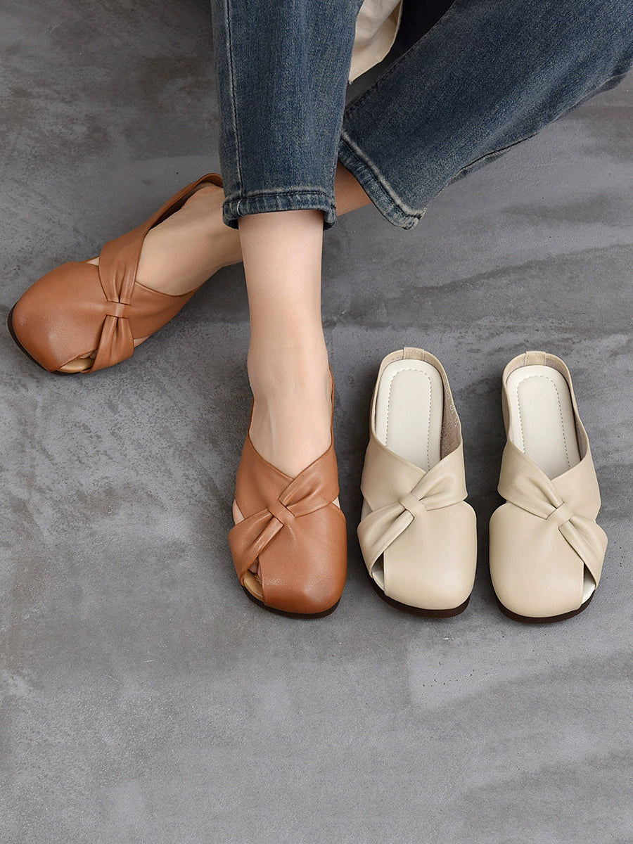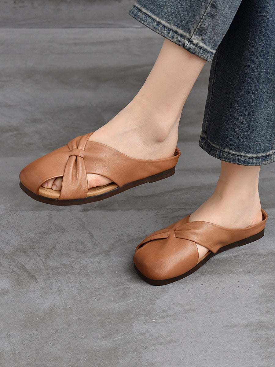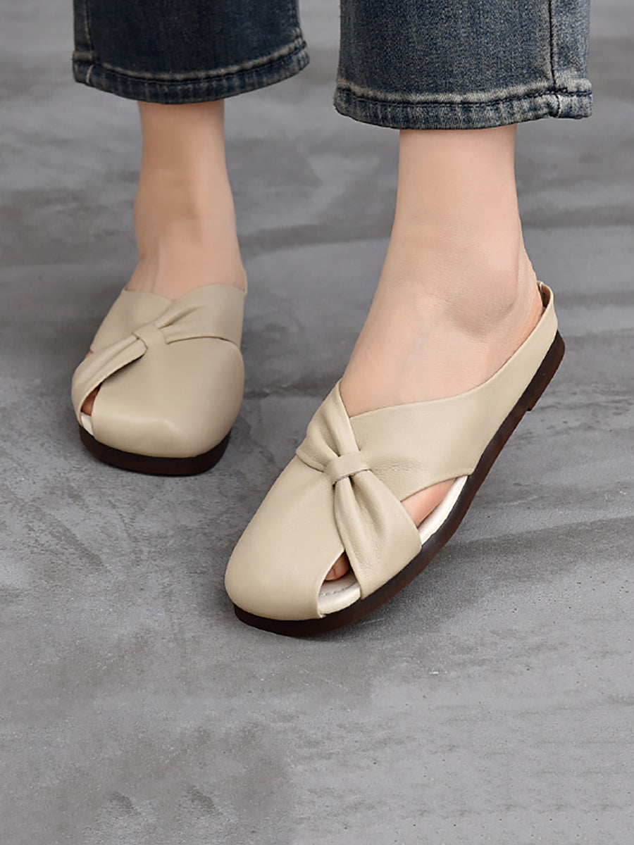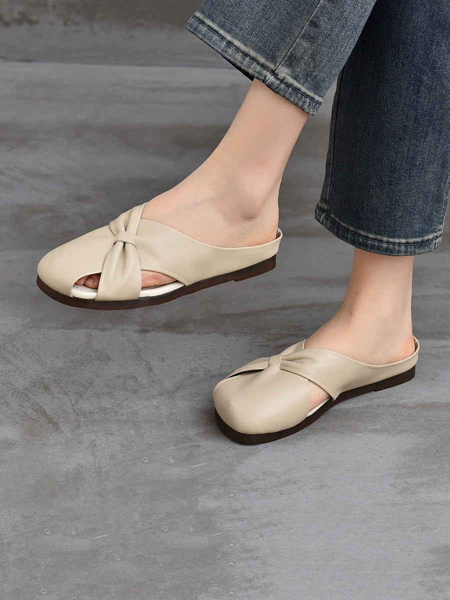 Women Summer Soft Leather Flat Slippers