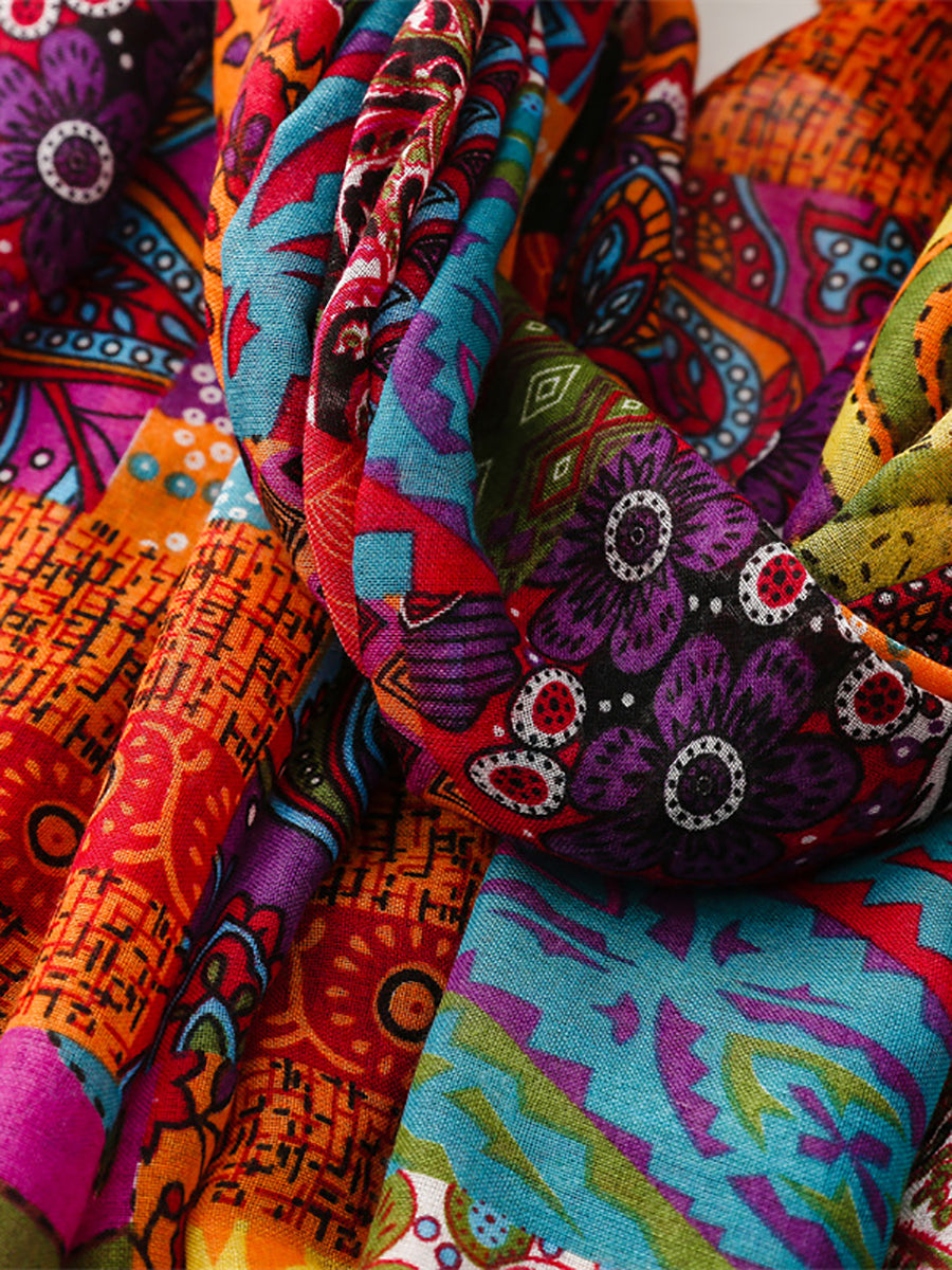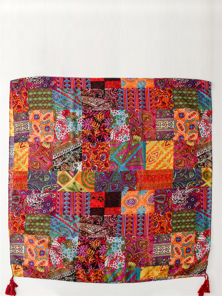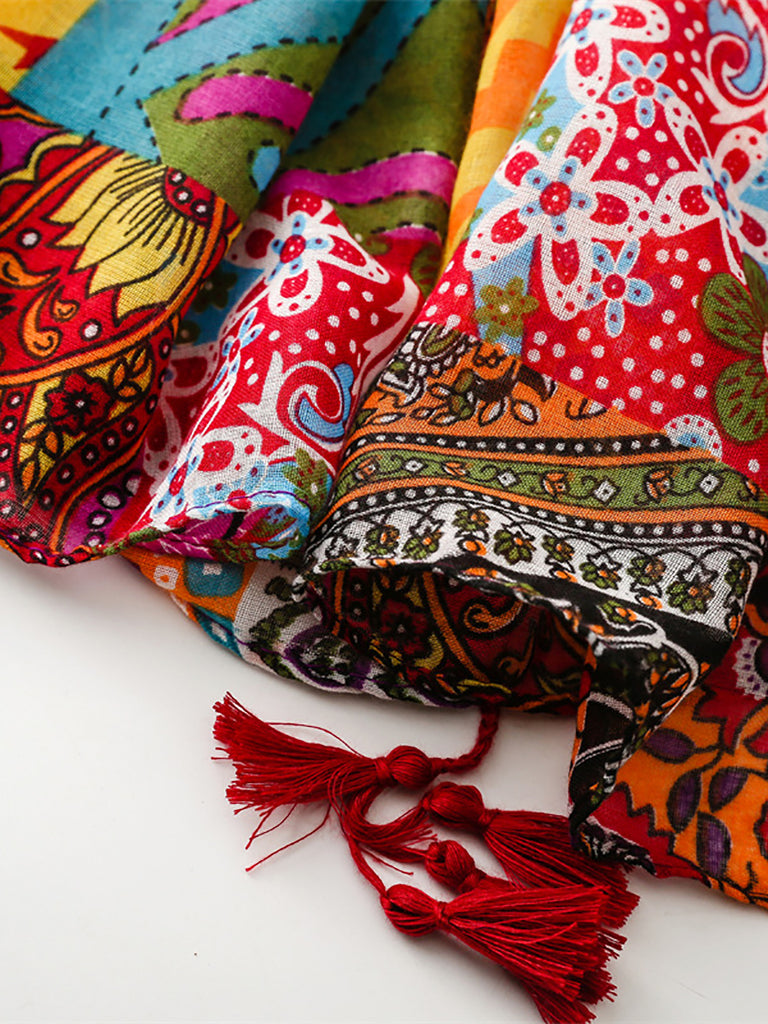 Women Summer Vintage Spliced Tassel Shawl Scarf