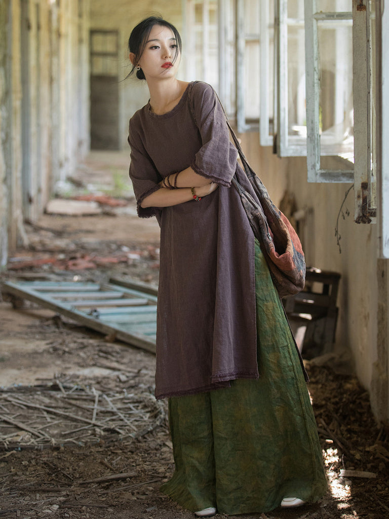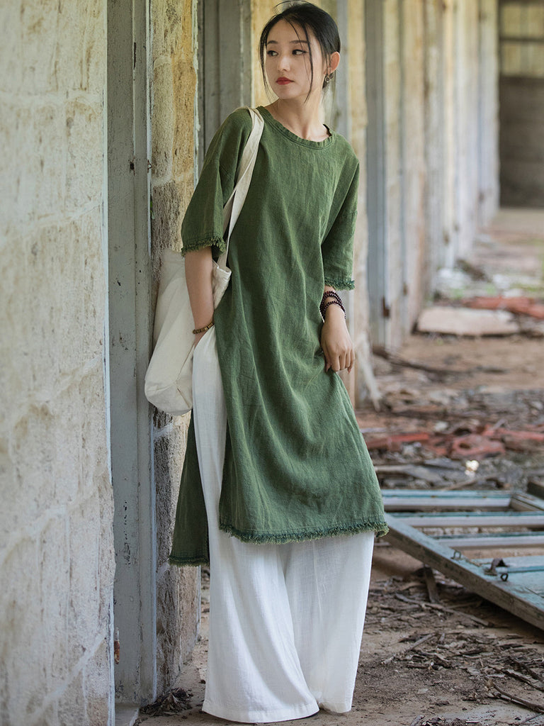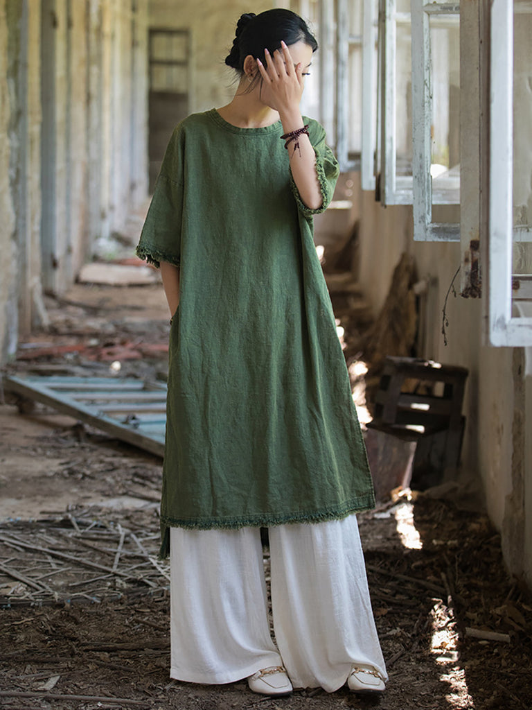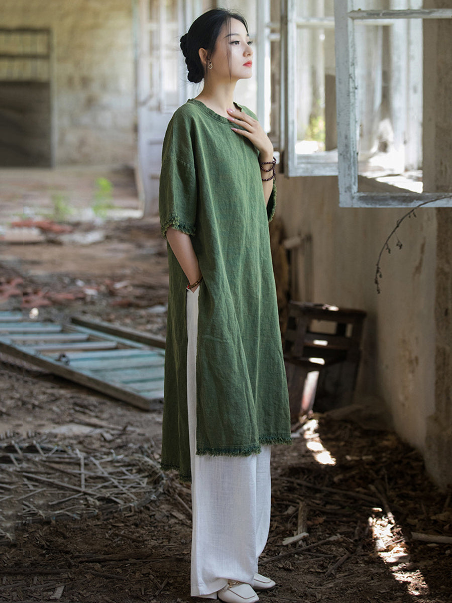 This dress is designed to keep you cool during summer while maintaining a fashionable look, with its knee-length design, solid pattern, O-Neck collar, and split hem detail.
