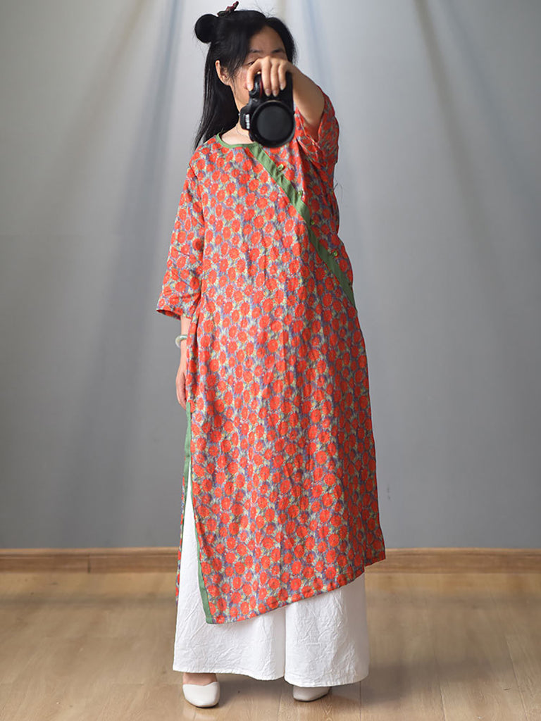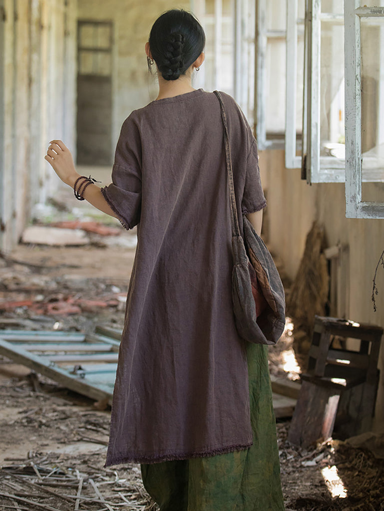 Plus Size Women Summer Vintage Tassel Split Hem Dress