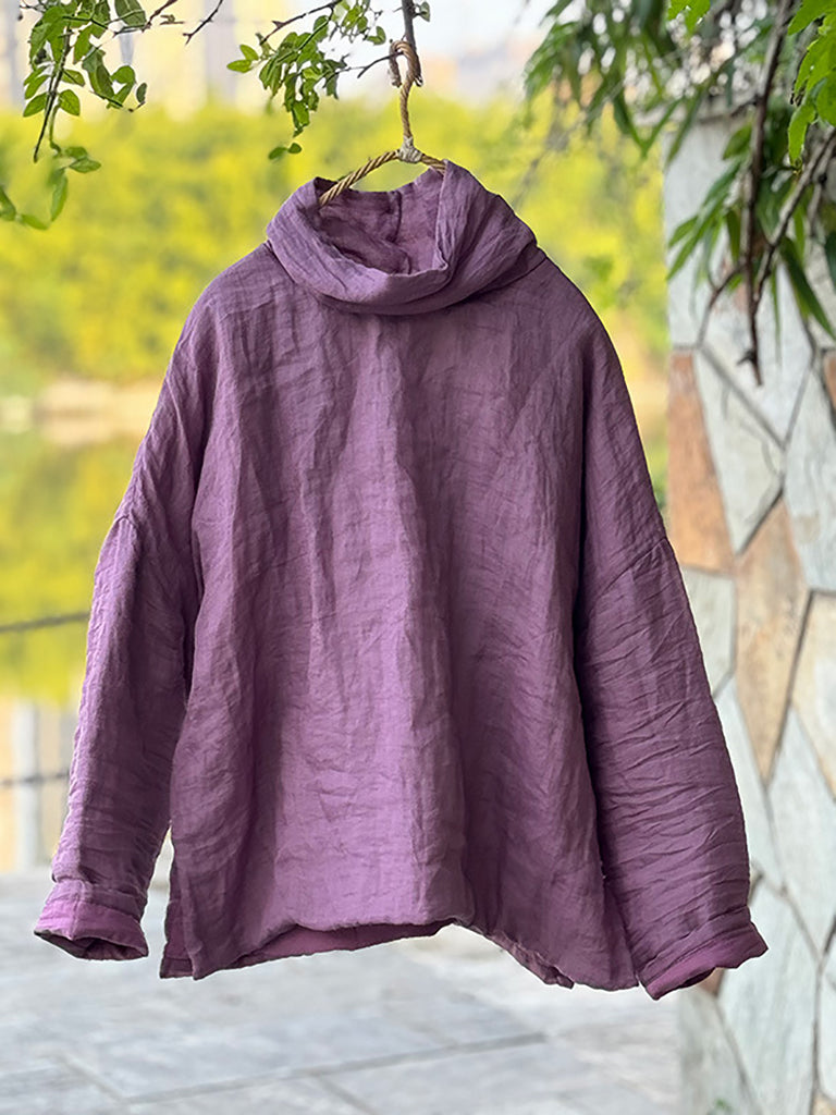 Women Vintage Autumn Floral Turtleneck Ramie Padded Coat
