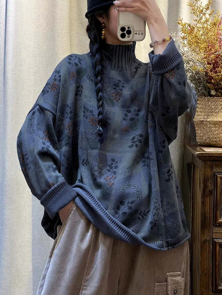 This fashionable sweater combines comfort and style with its vintage flower pattern. The turtleneck and full sleeve design provides additional warmth for the colder months, making it the perfect addition to your autumn and winter wardrobe.