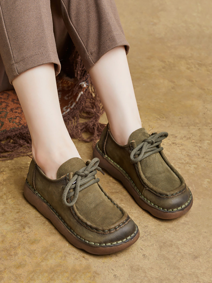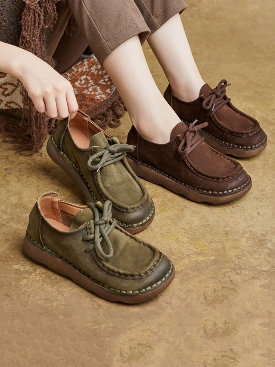 Women Vintage Genuine Leather Flat Shoes