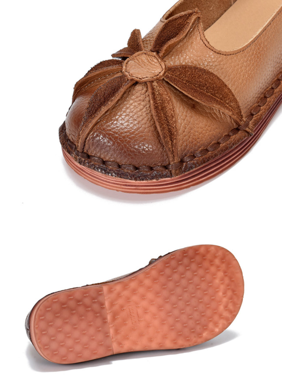 Women Vintage Genuine Leather Flower Low Heel Shoes