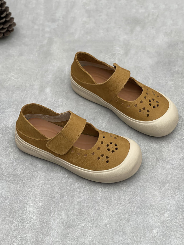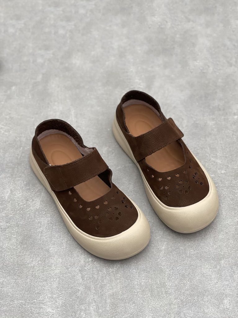 Women Vintage Genuine Leather Hollow Out Platform Shoes