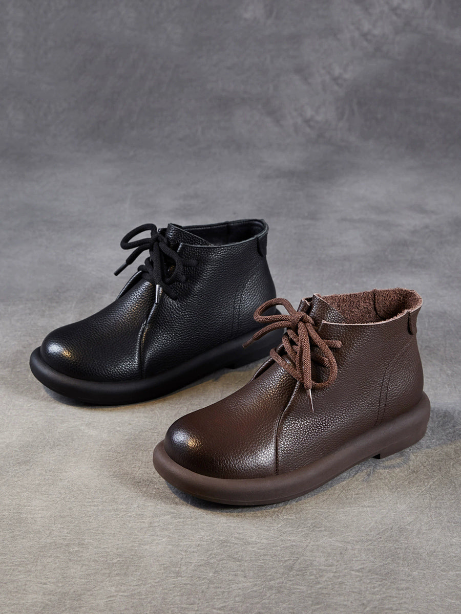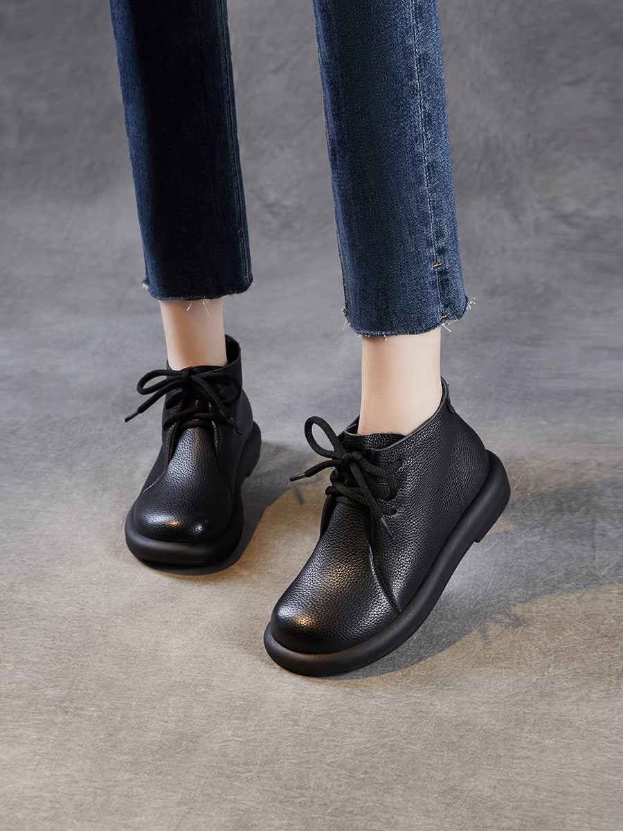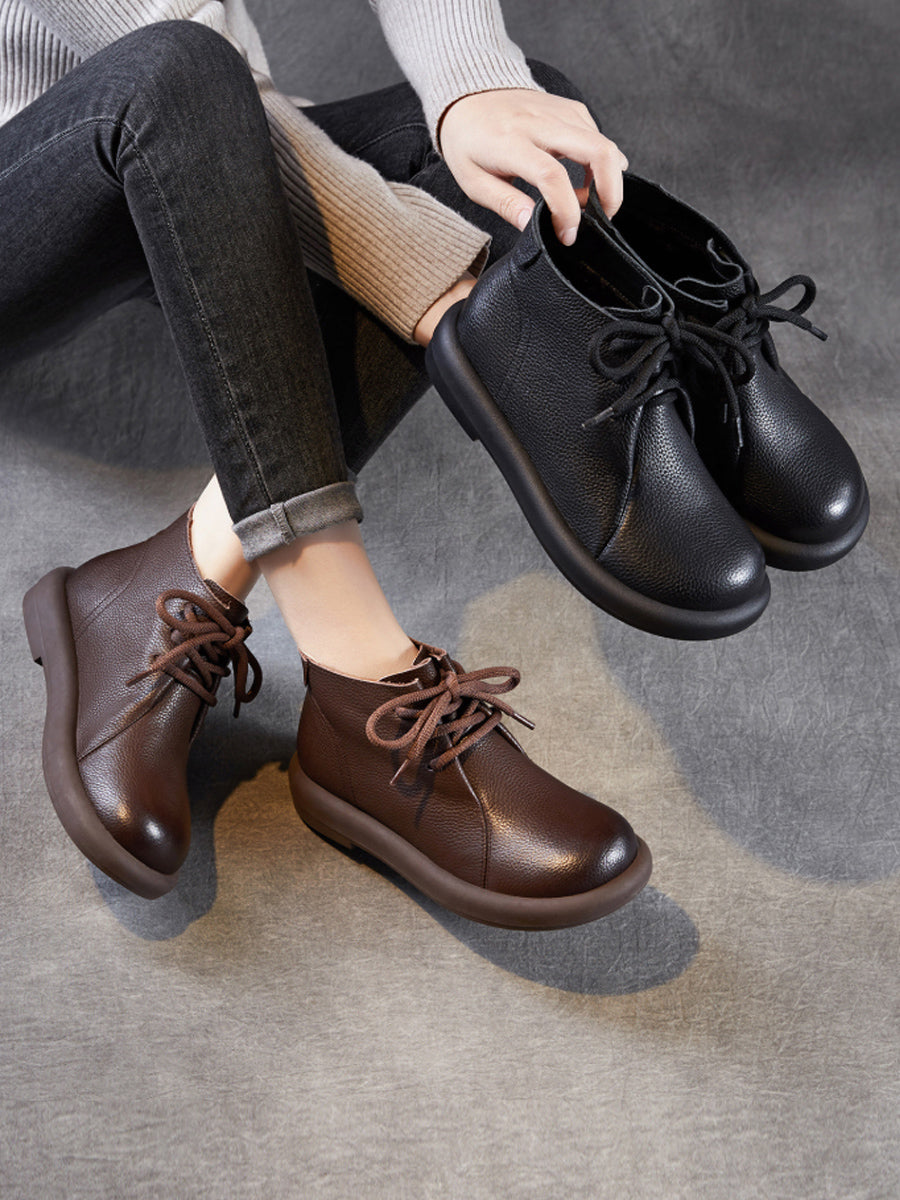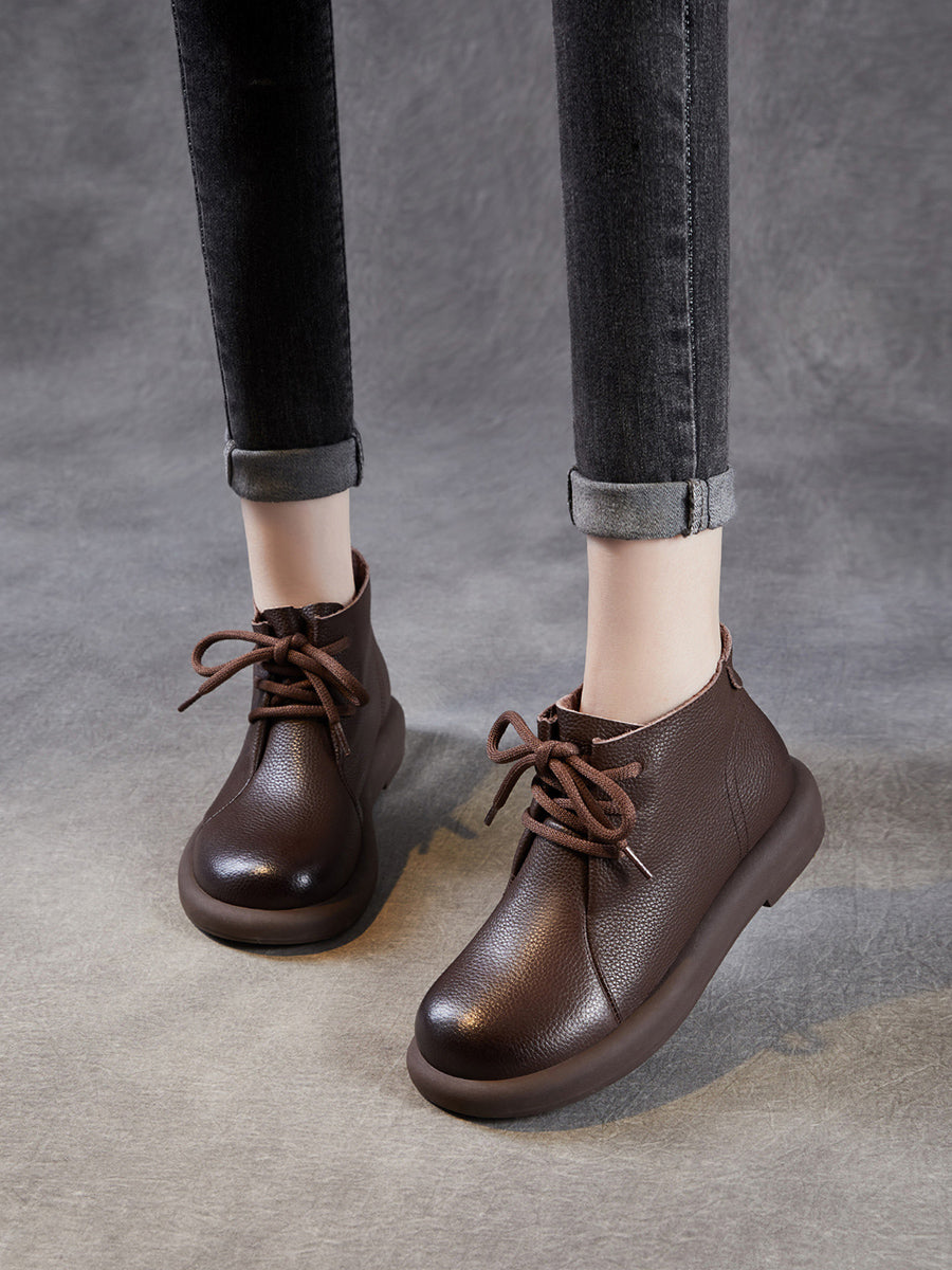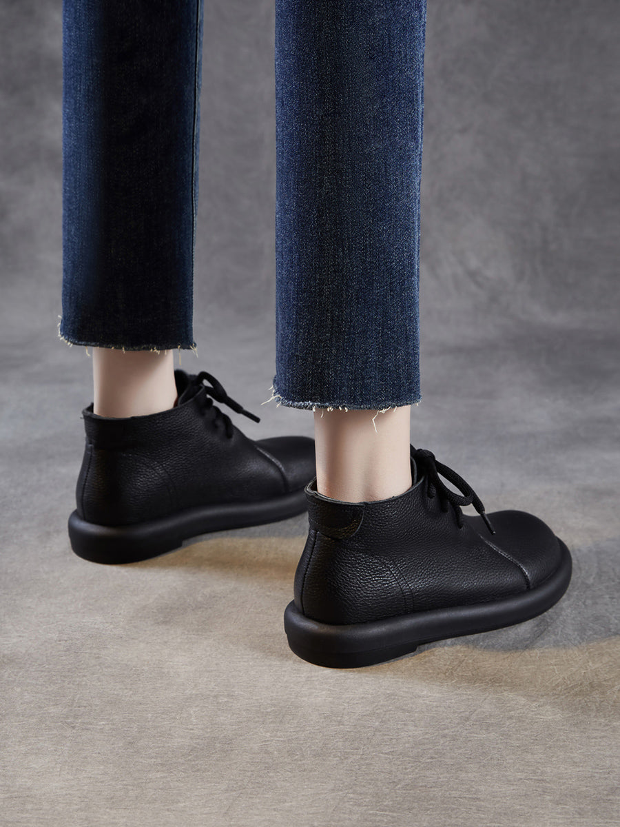 Women Vintage Genuine Leather Low Heel Ankle Boots