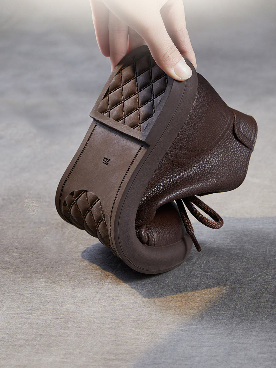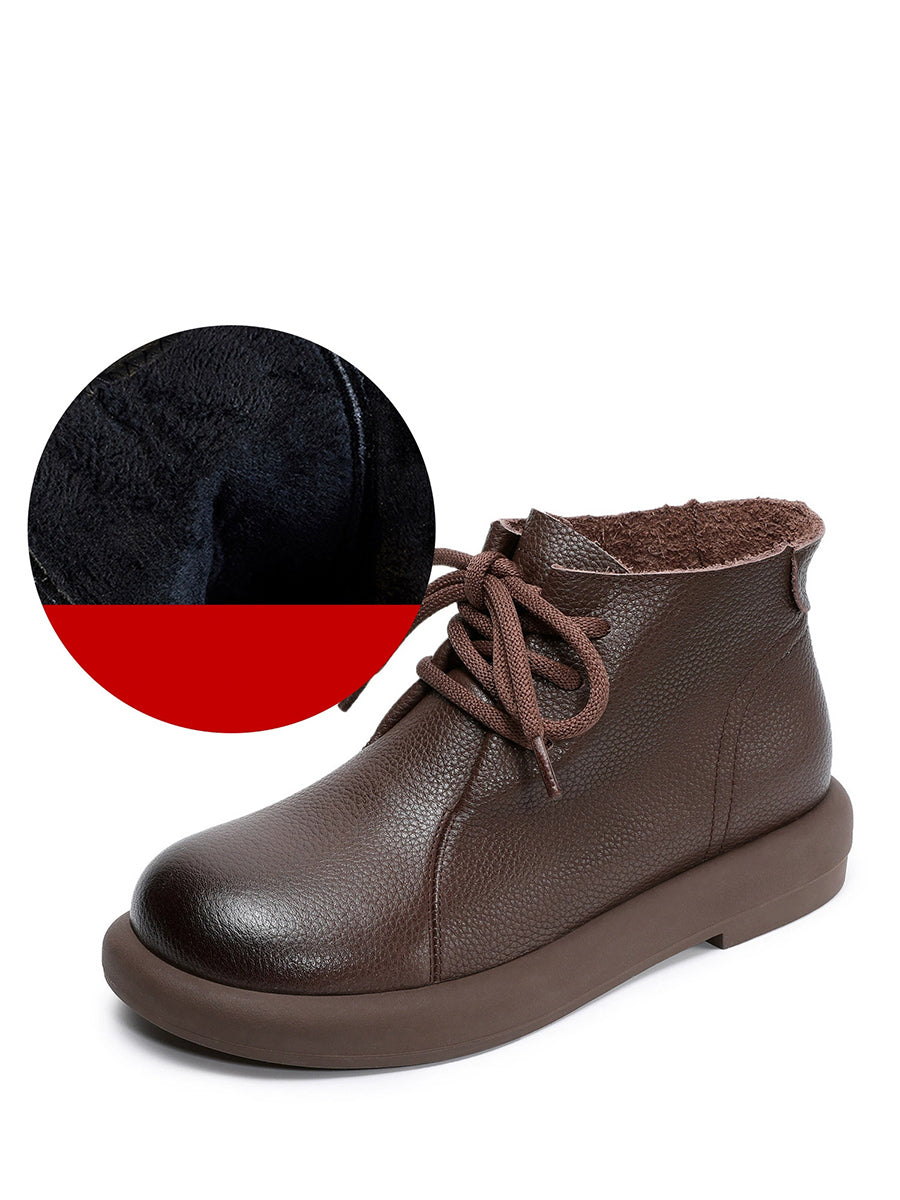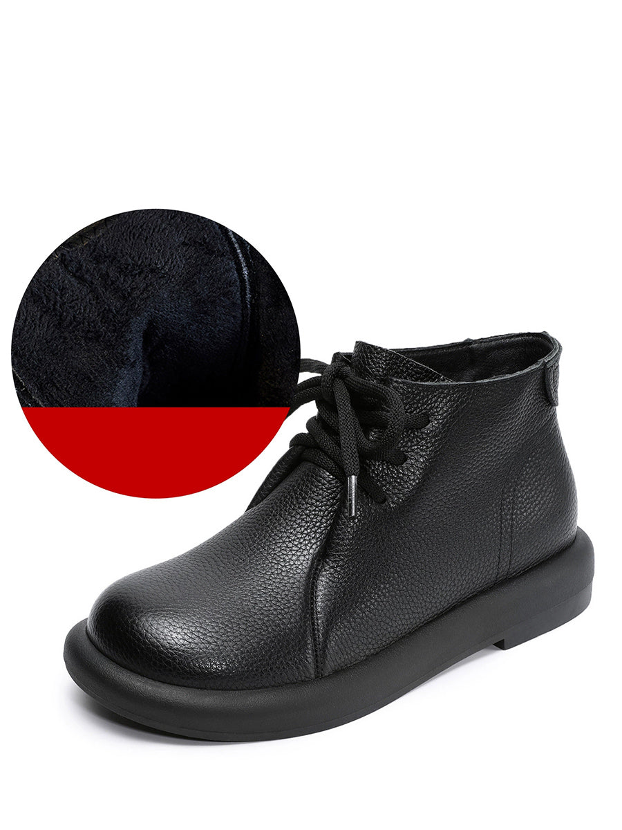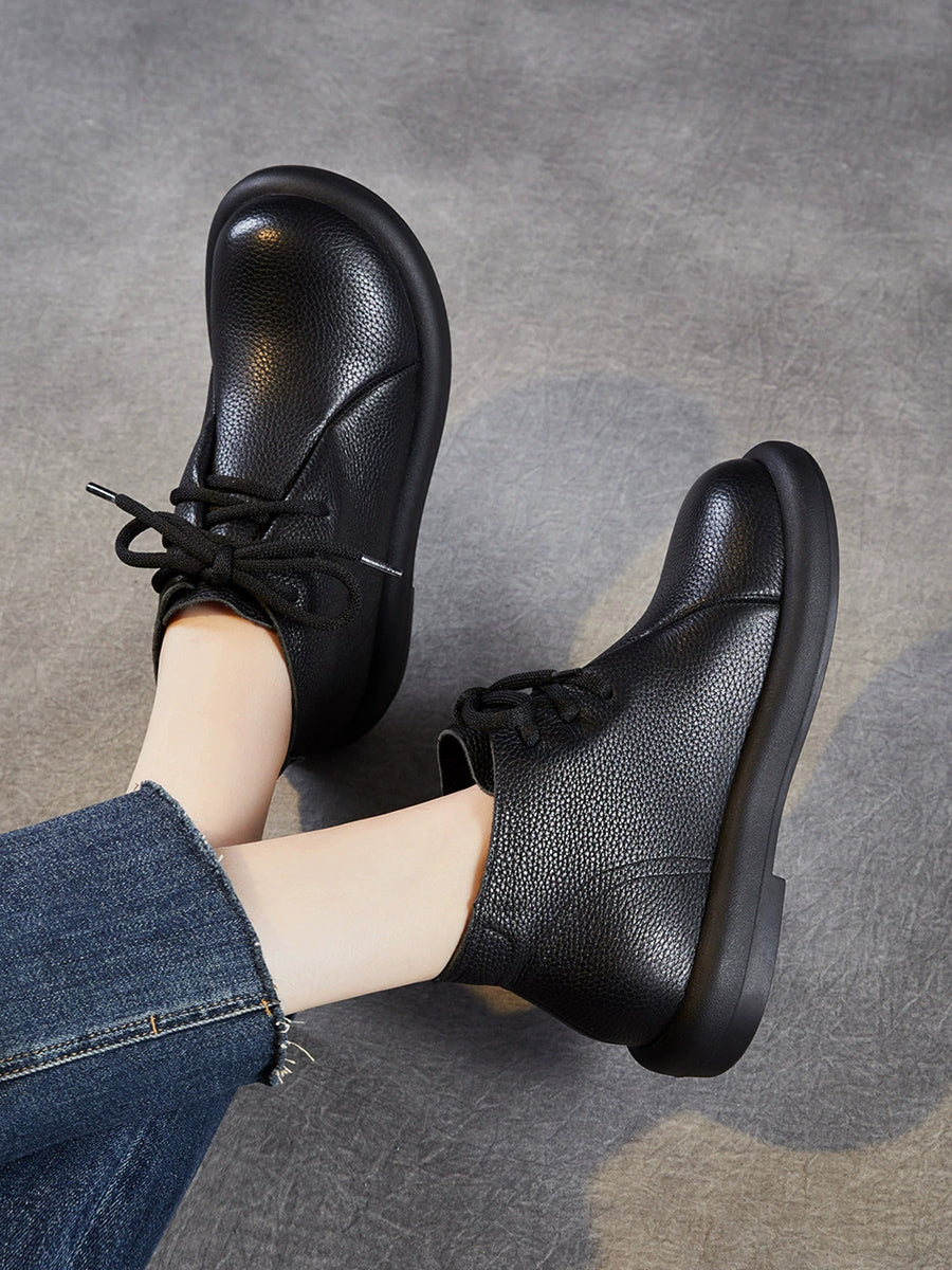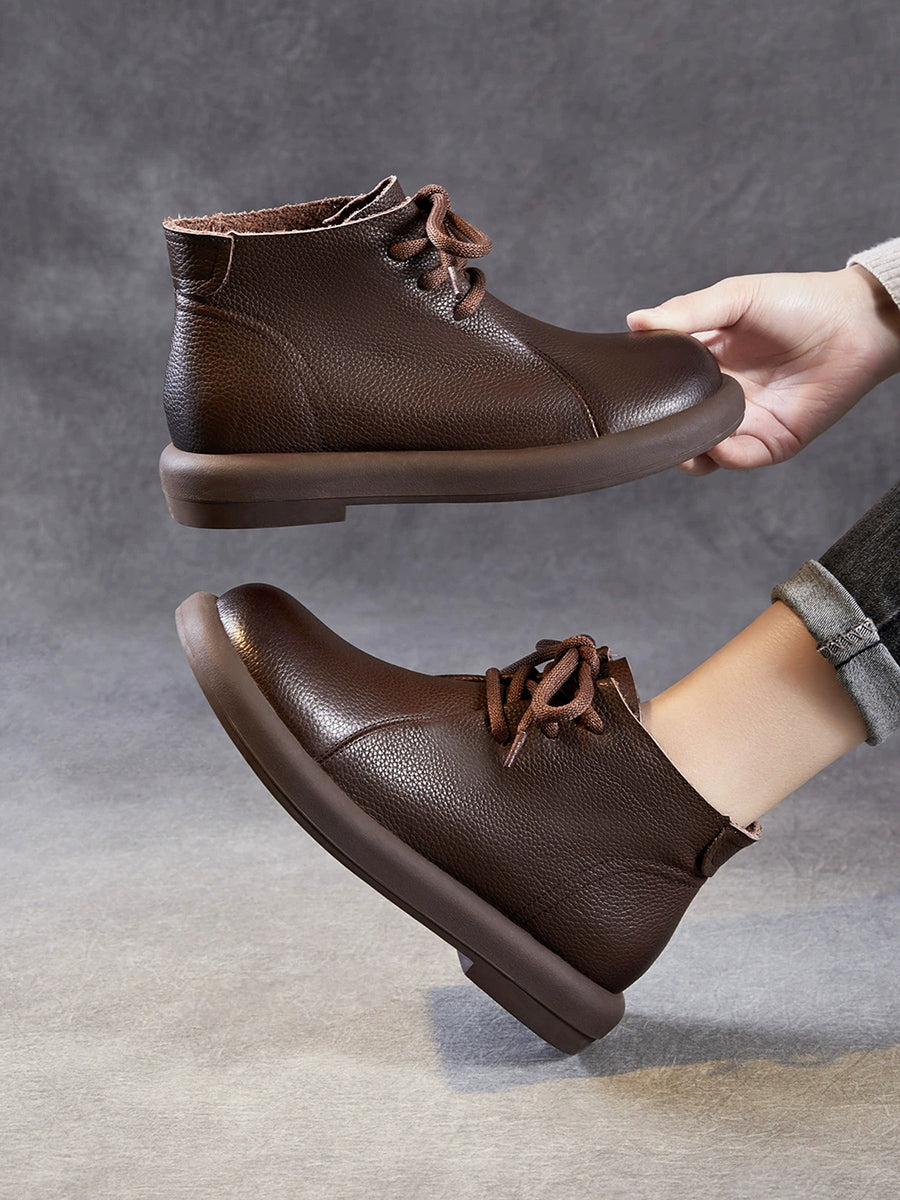 Women Vintage Genuine Leather Low Heel Ankle Boots