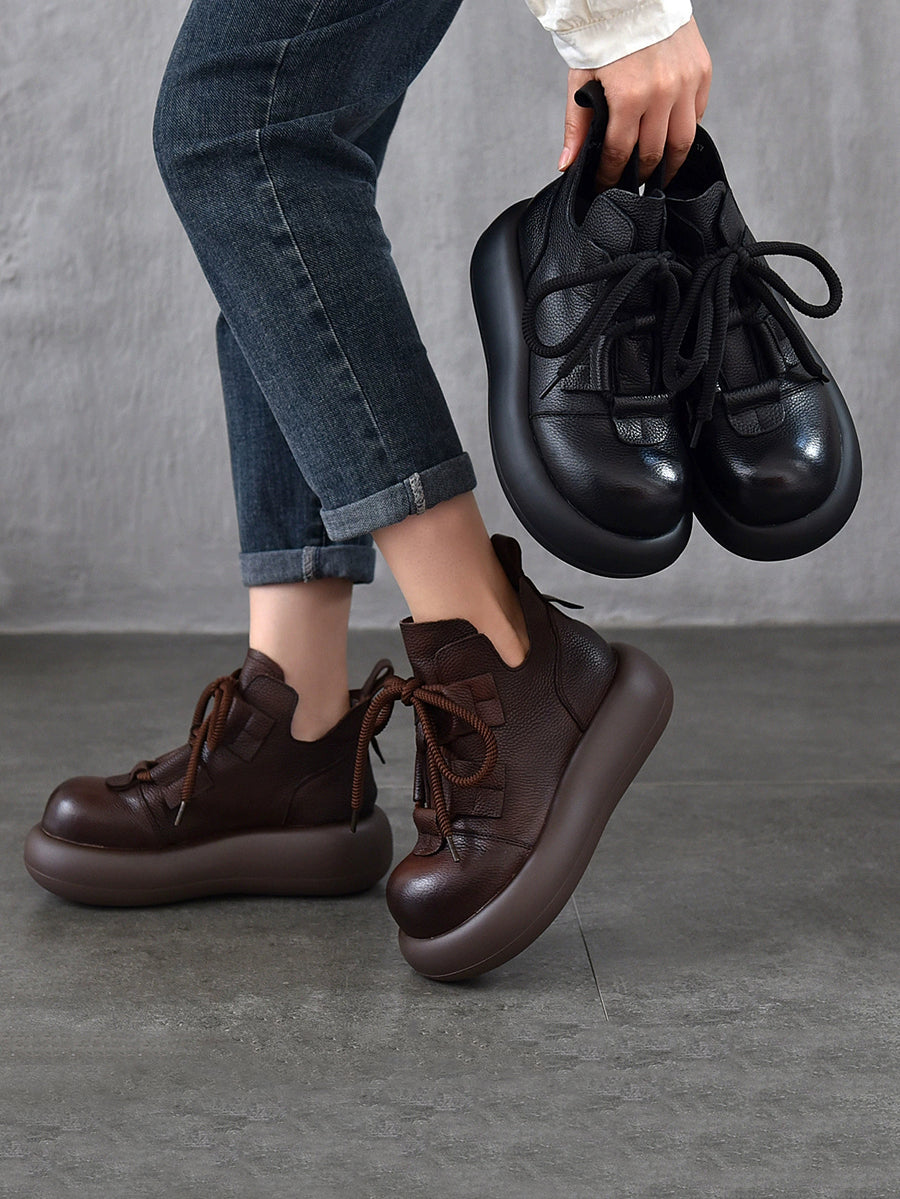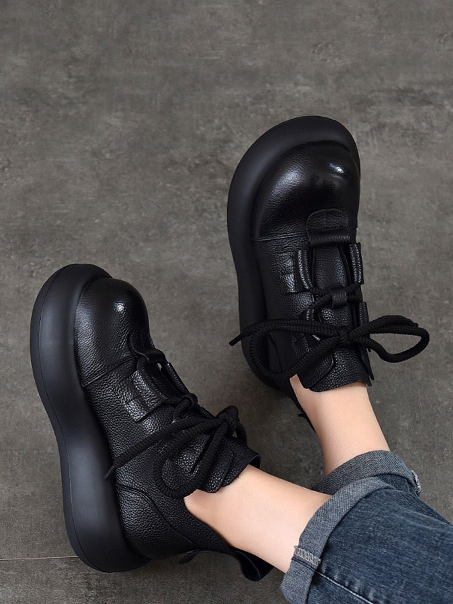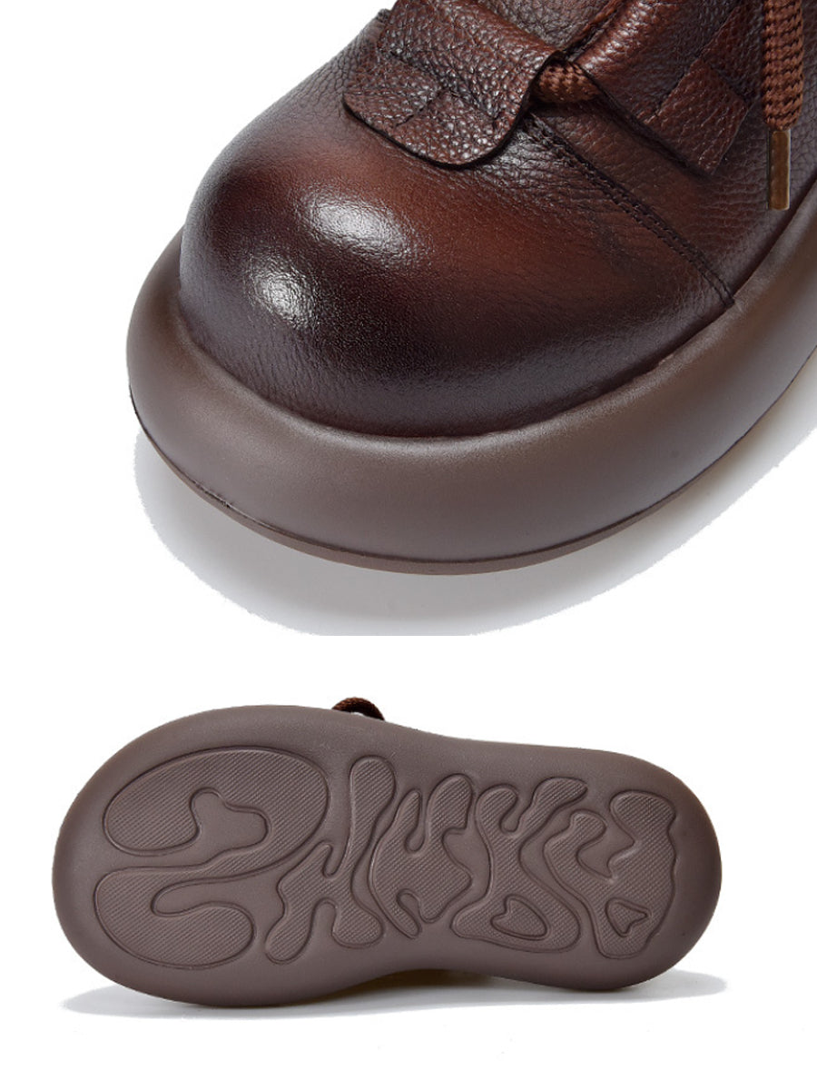 Women Vintage Leather Spliced Strap Platform Shoes