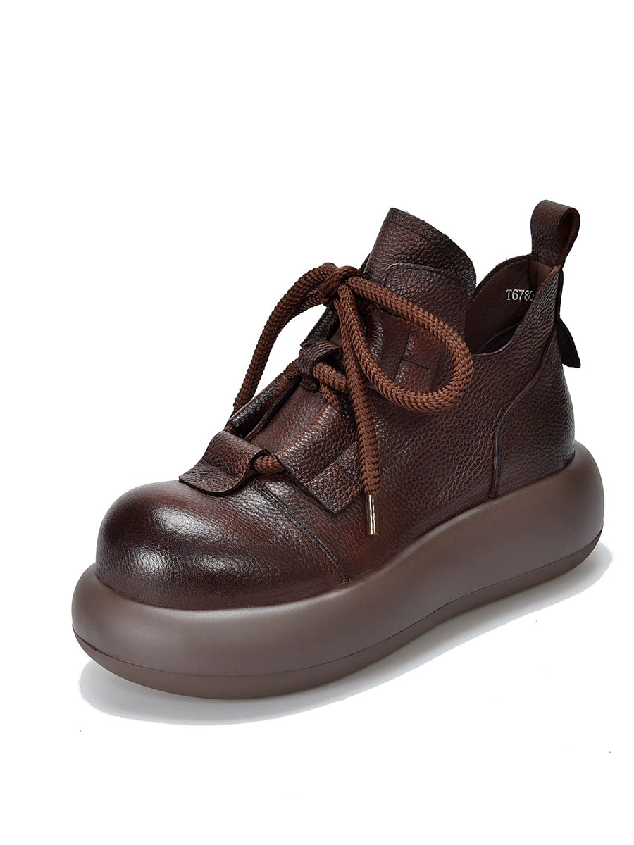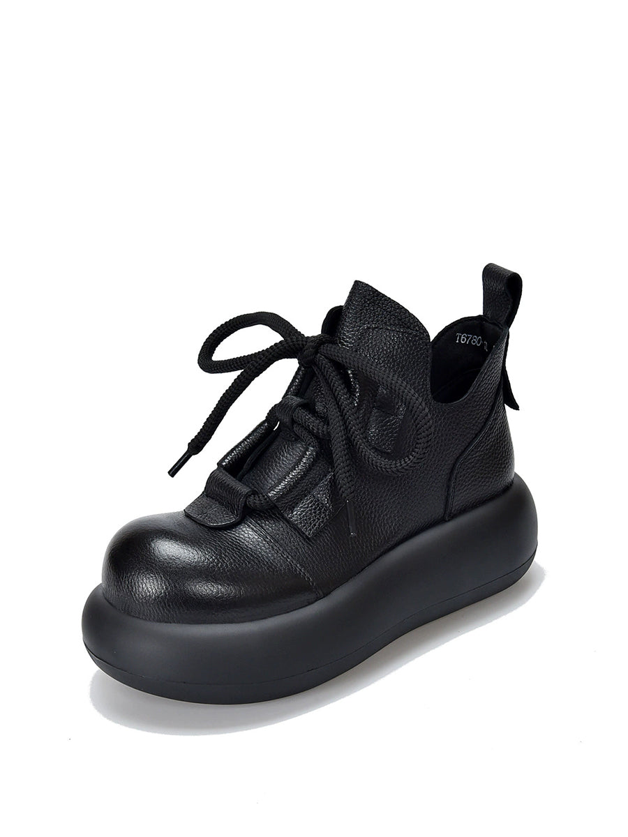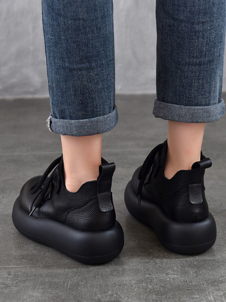 Women Vintage Leather Spliced Strap Platform Shoes