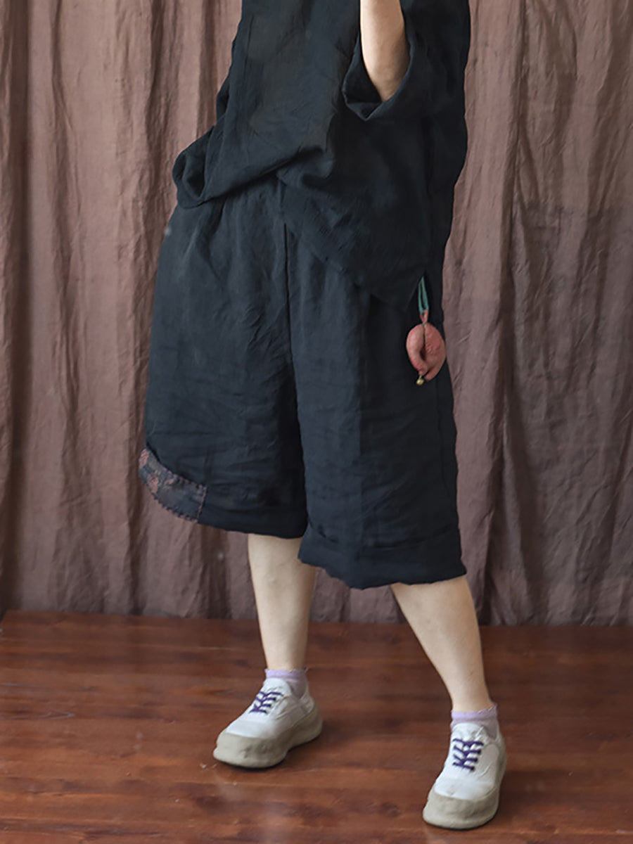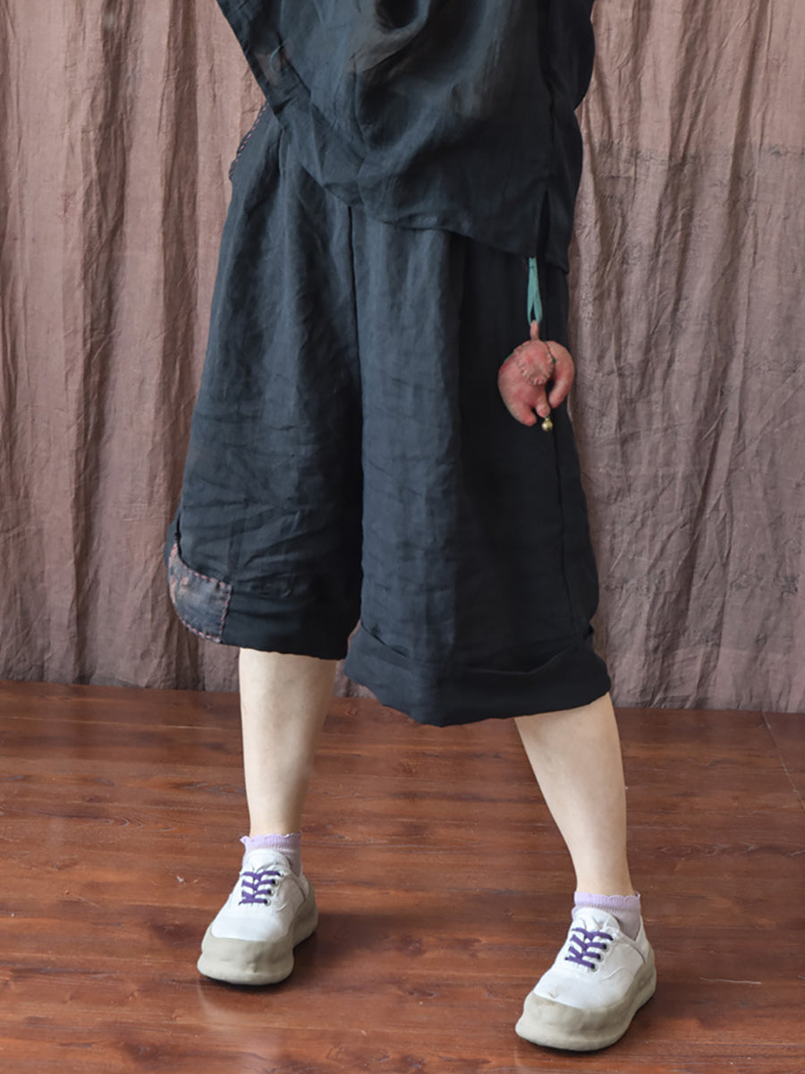 Description These pants provide chic, breezy coverage for everyday wear. These stylish shorts are perfect for the spring, summer, and autumn months. With simple solid coloring and intricate details like patchwork and stitching, you'll look timeless and sophisticated.