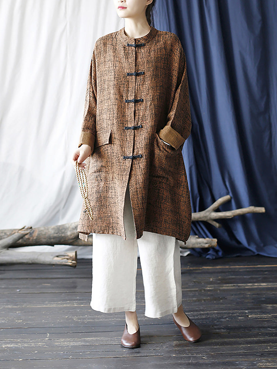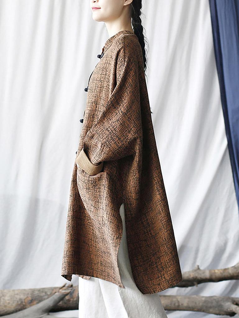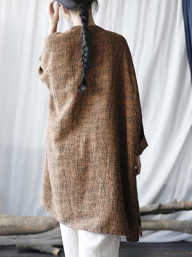 Women Vintage Spring Split Hem Batwing Sleeve Long Shirt