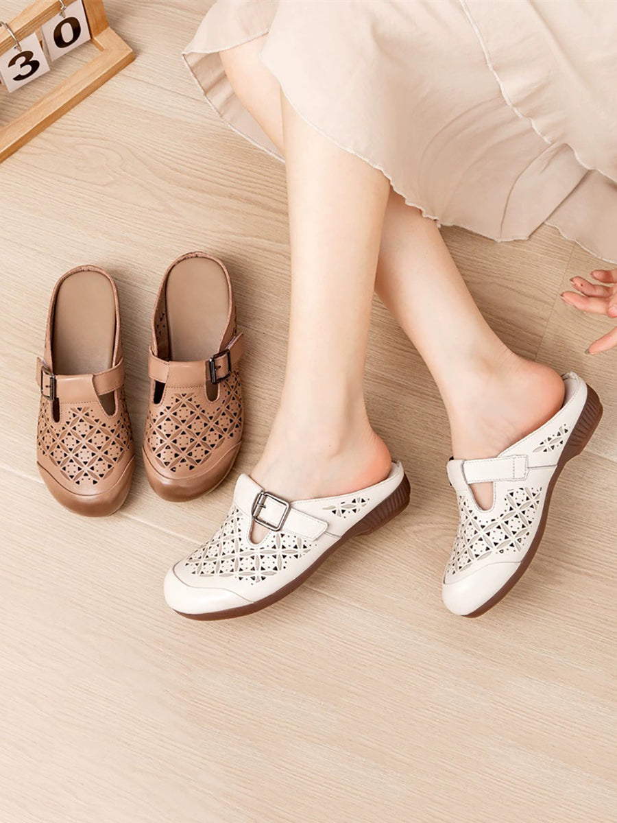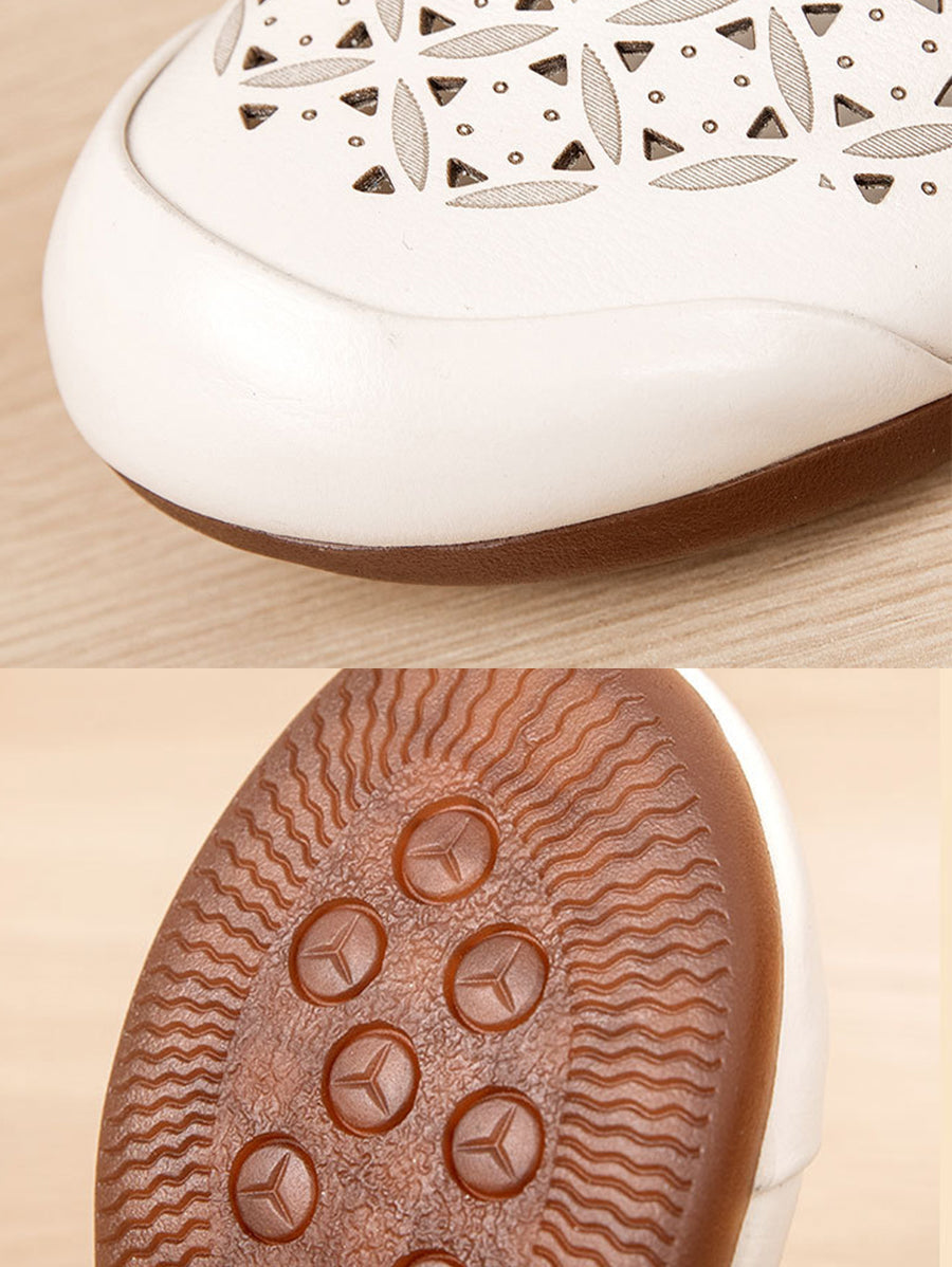 Women Vintage Summer Hollow Out Leather Slippers