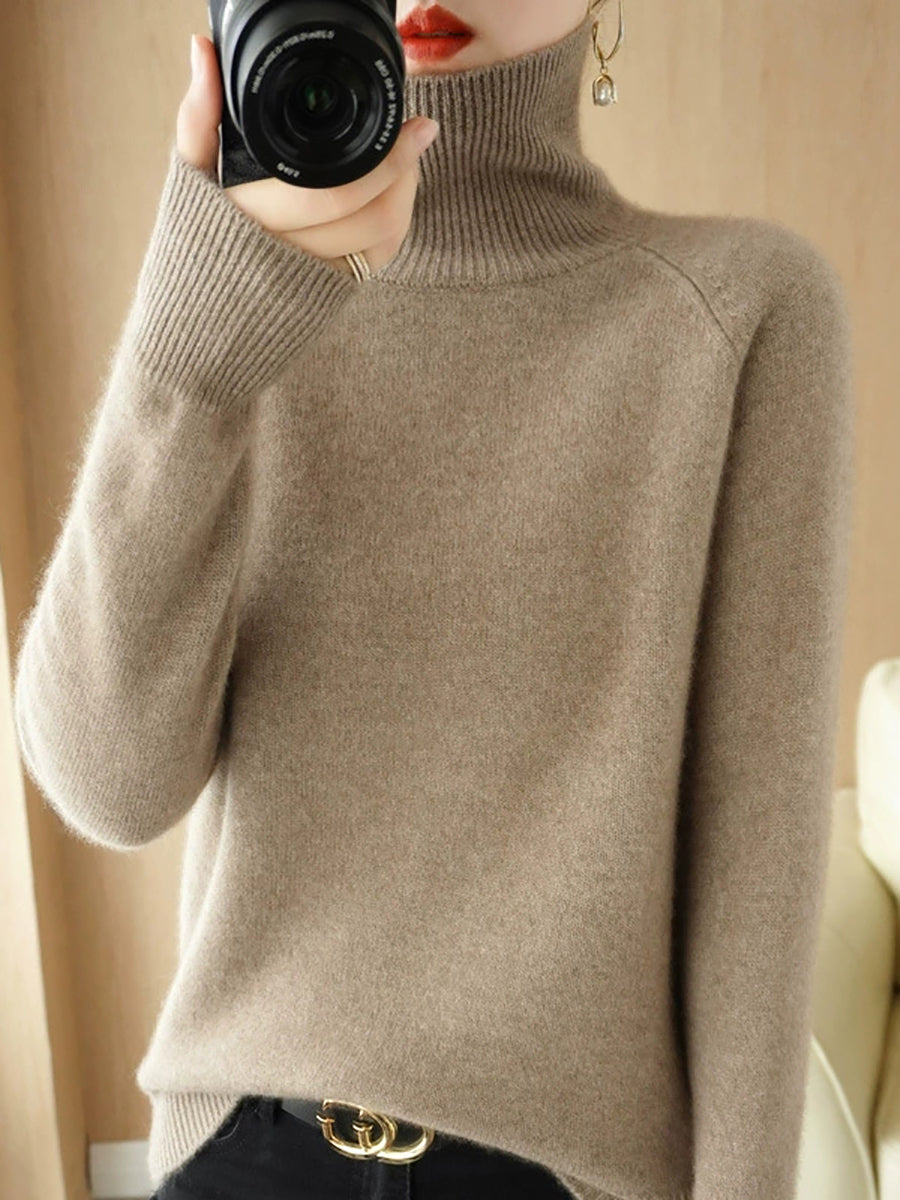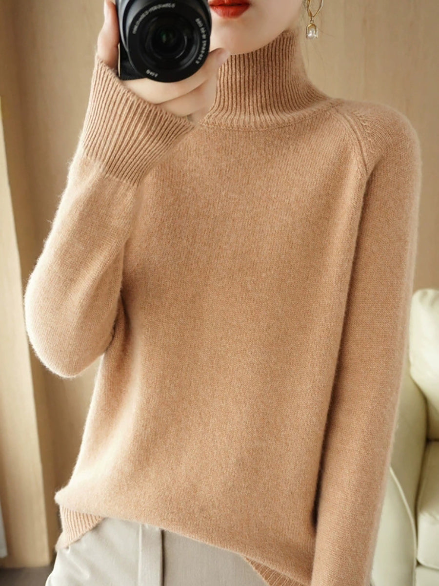 Women Winter Artsy Pure Color Turtleneck Sweater