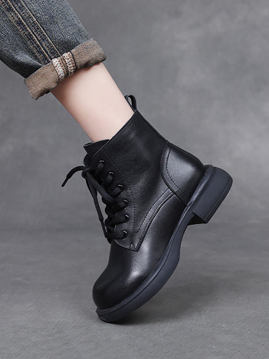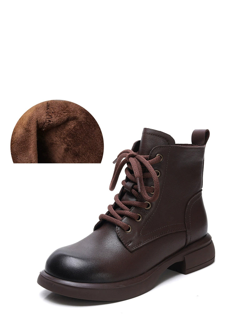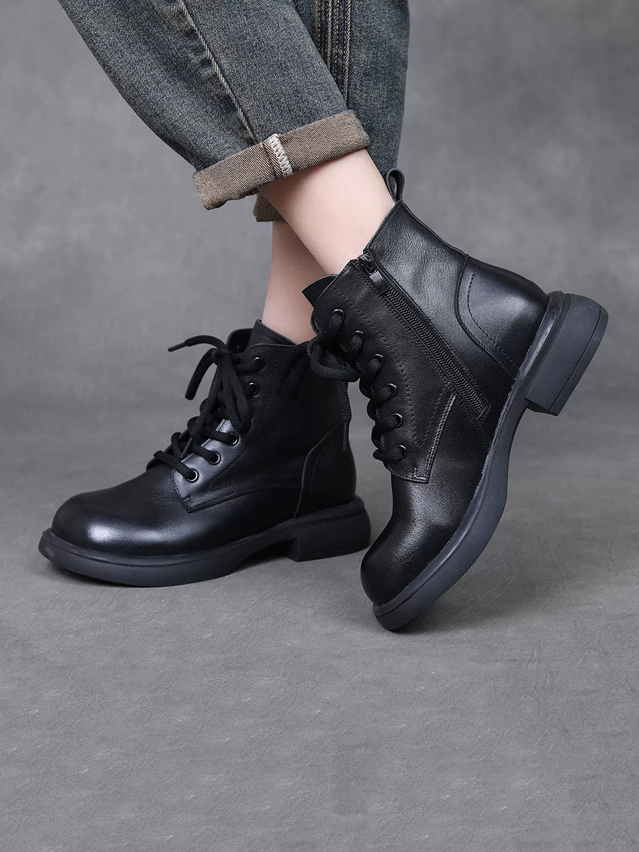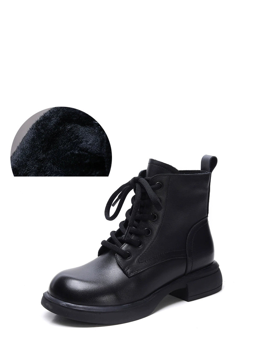 Women Winter Genuine Leather Low Heel Martin Boots
