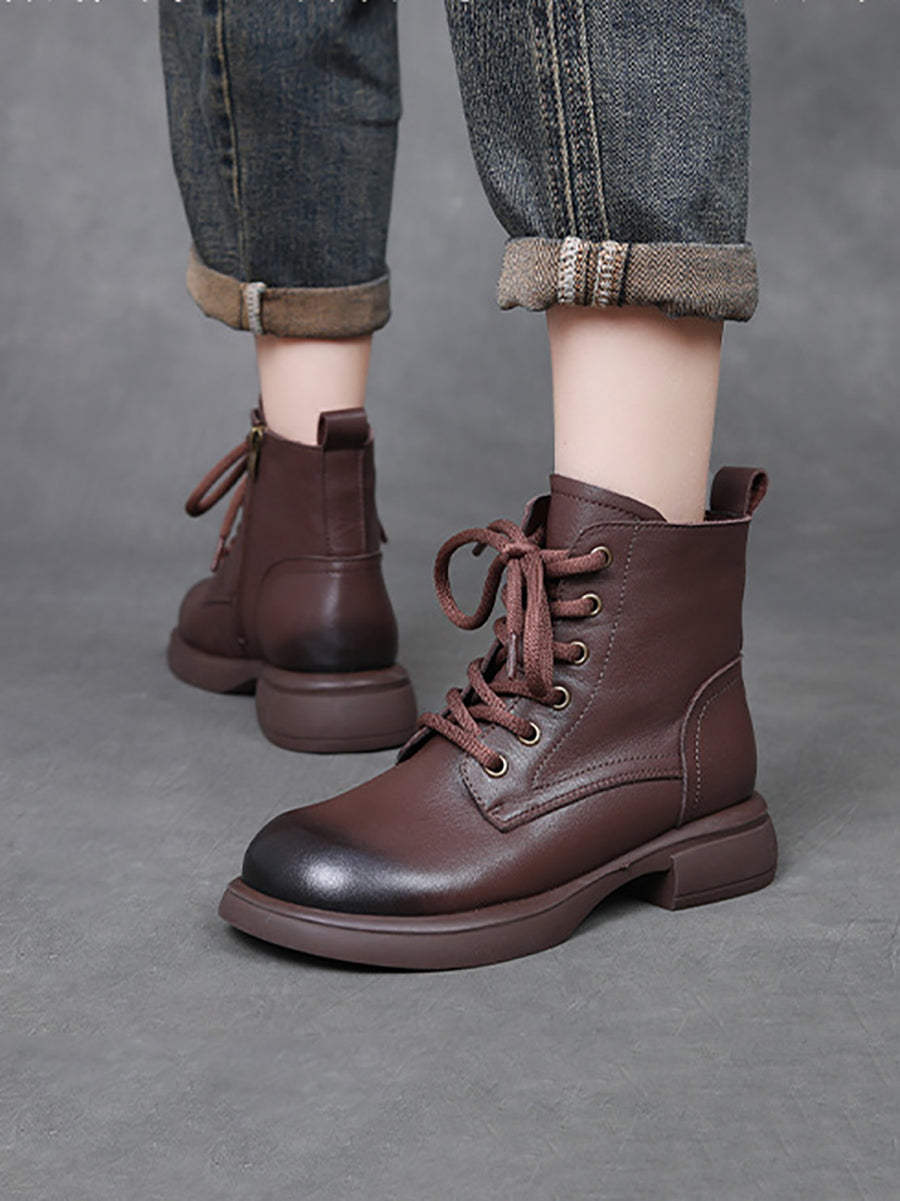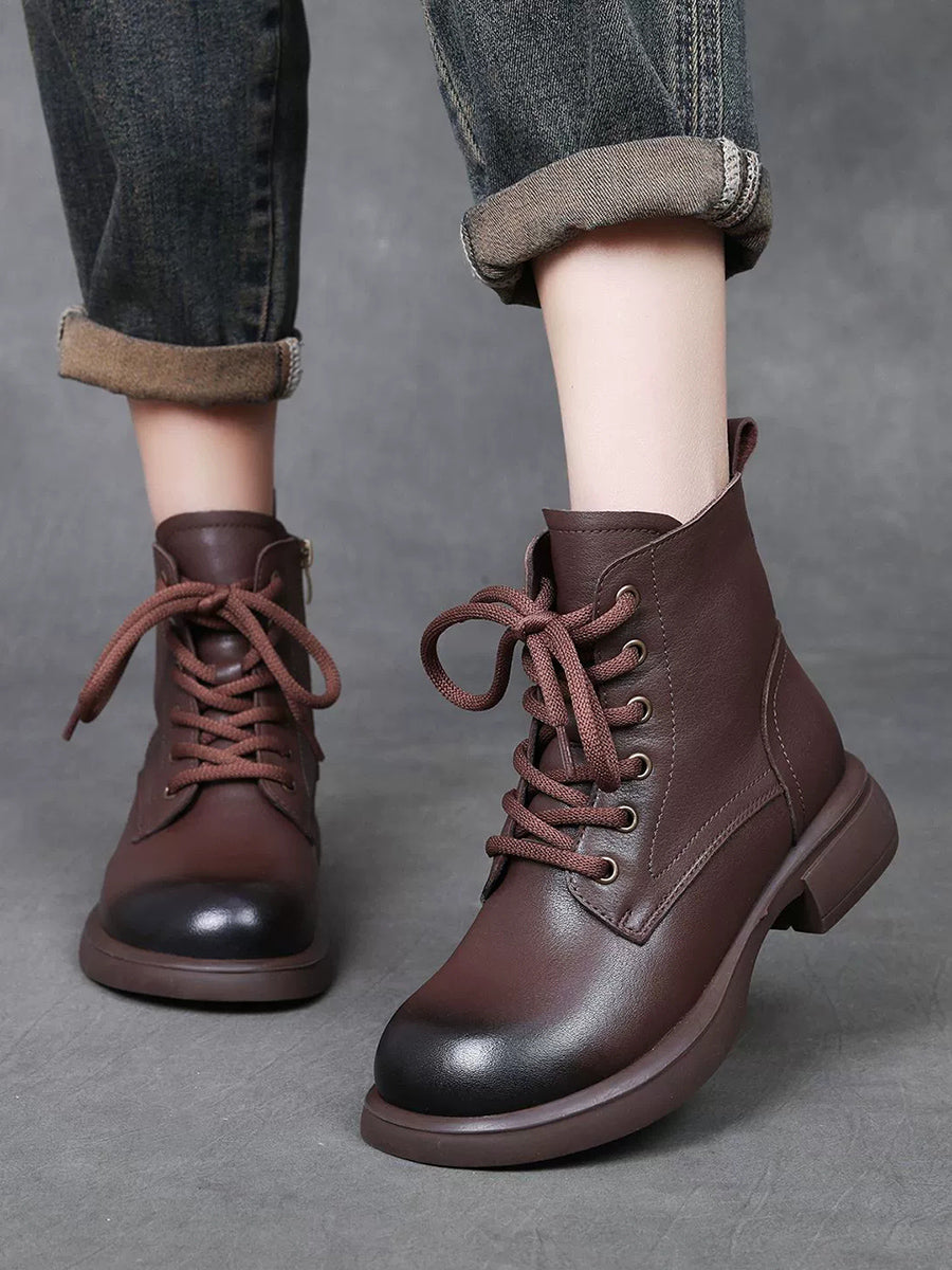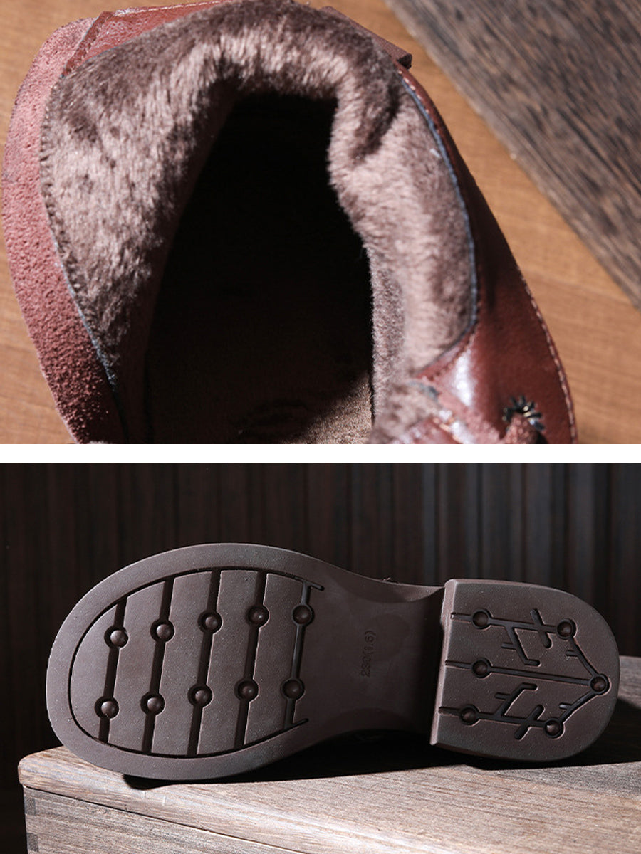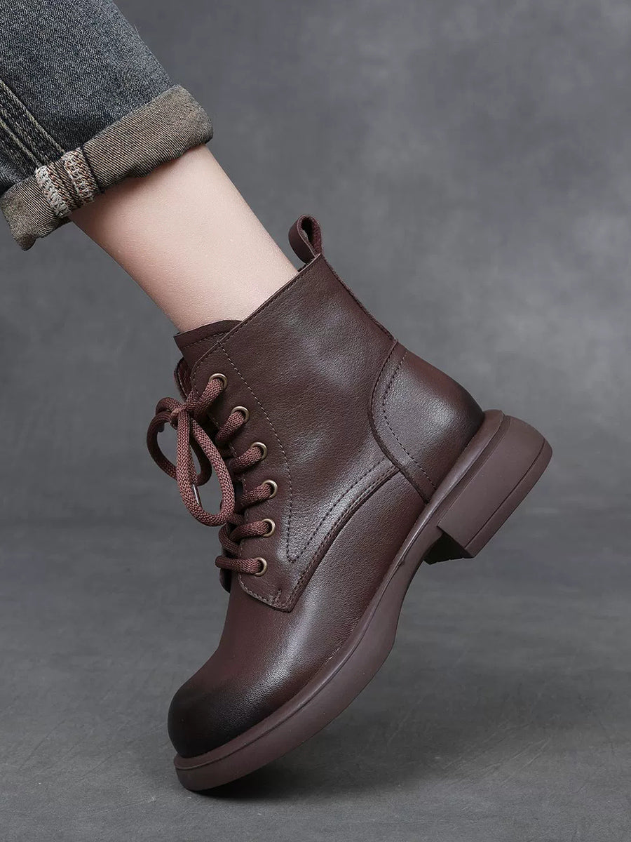 Women Winter Genuine Leather Low Heel Martin Boots