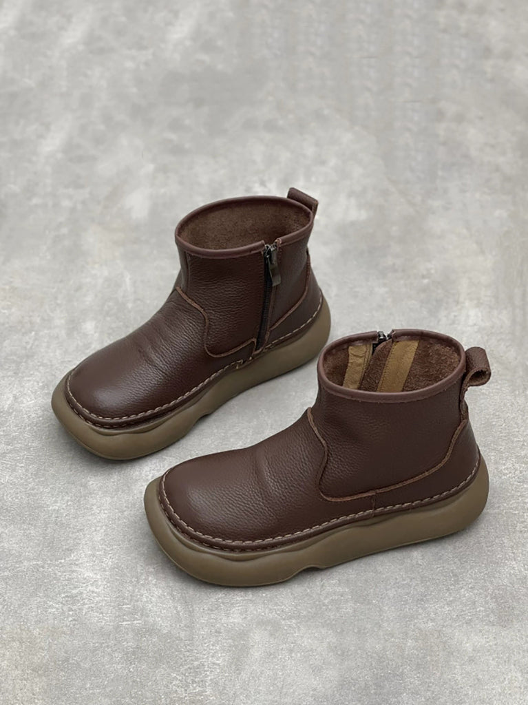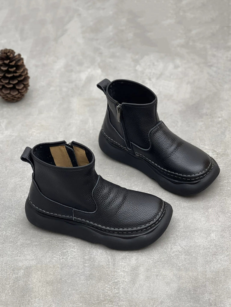 Women Winter Genuine Leather Spliced Flat Ankle Boots