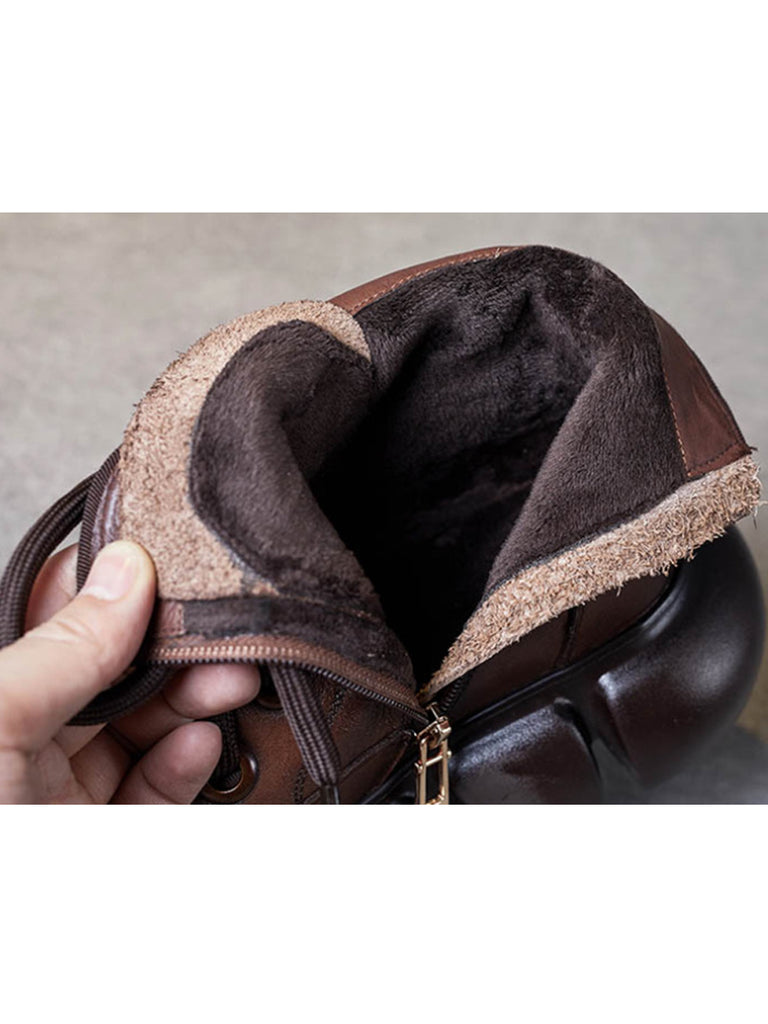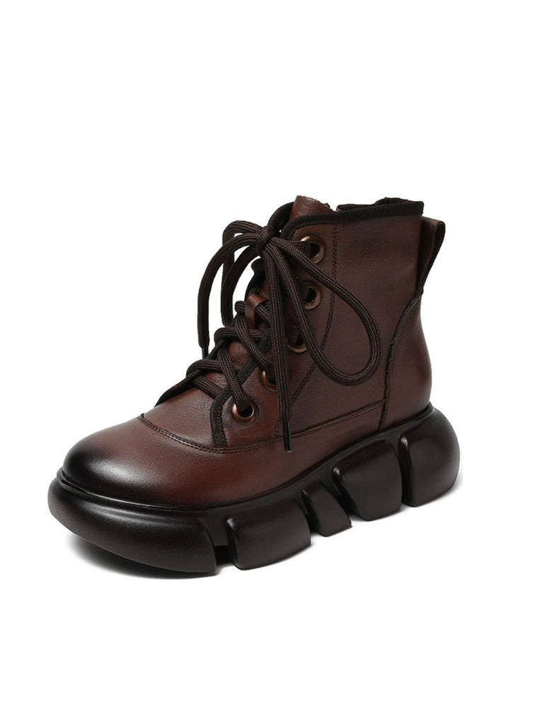 Women Winter Pure Color Leather Platform Martin Boots