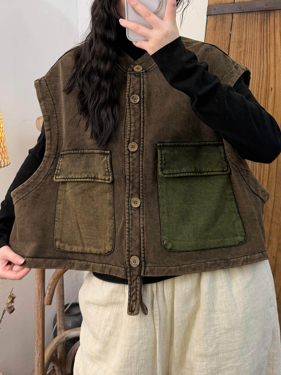 Crafted from premium cotton, this winter vest showcases a striking colorblock pattern that bridges vintage aesthetics with contemporary style. The structured stand collar provides a polished silhouette, while the retro-inspired design delivers timeless appeal. Versatile across winter and autumn seasons, it layers effortlessly over your favorite pieces for added warmth and visual interest.