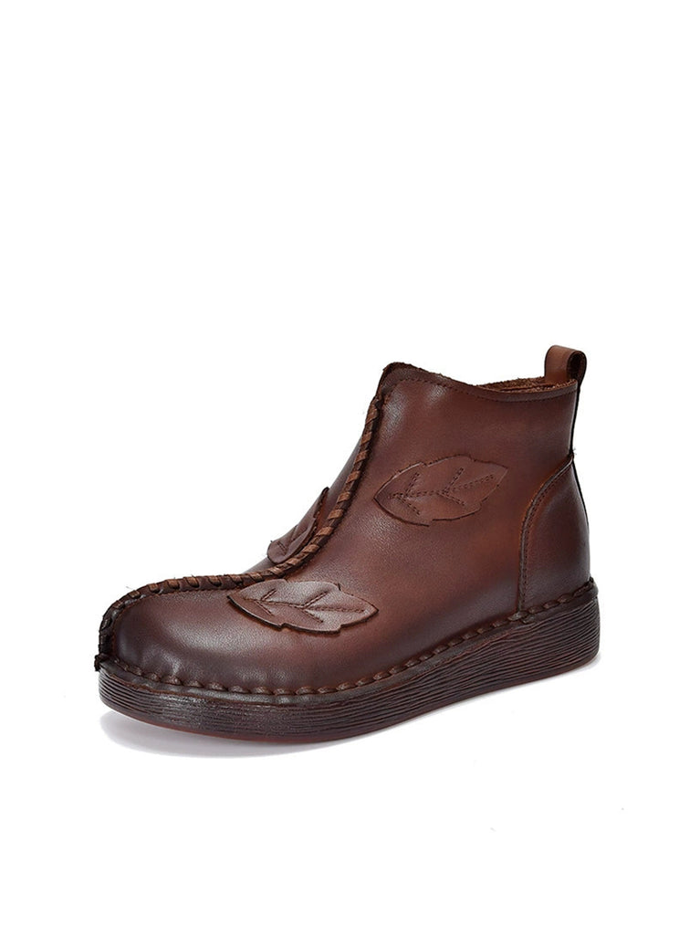 Women Winter Retro Leather Spliced Leather Ankle Boots