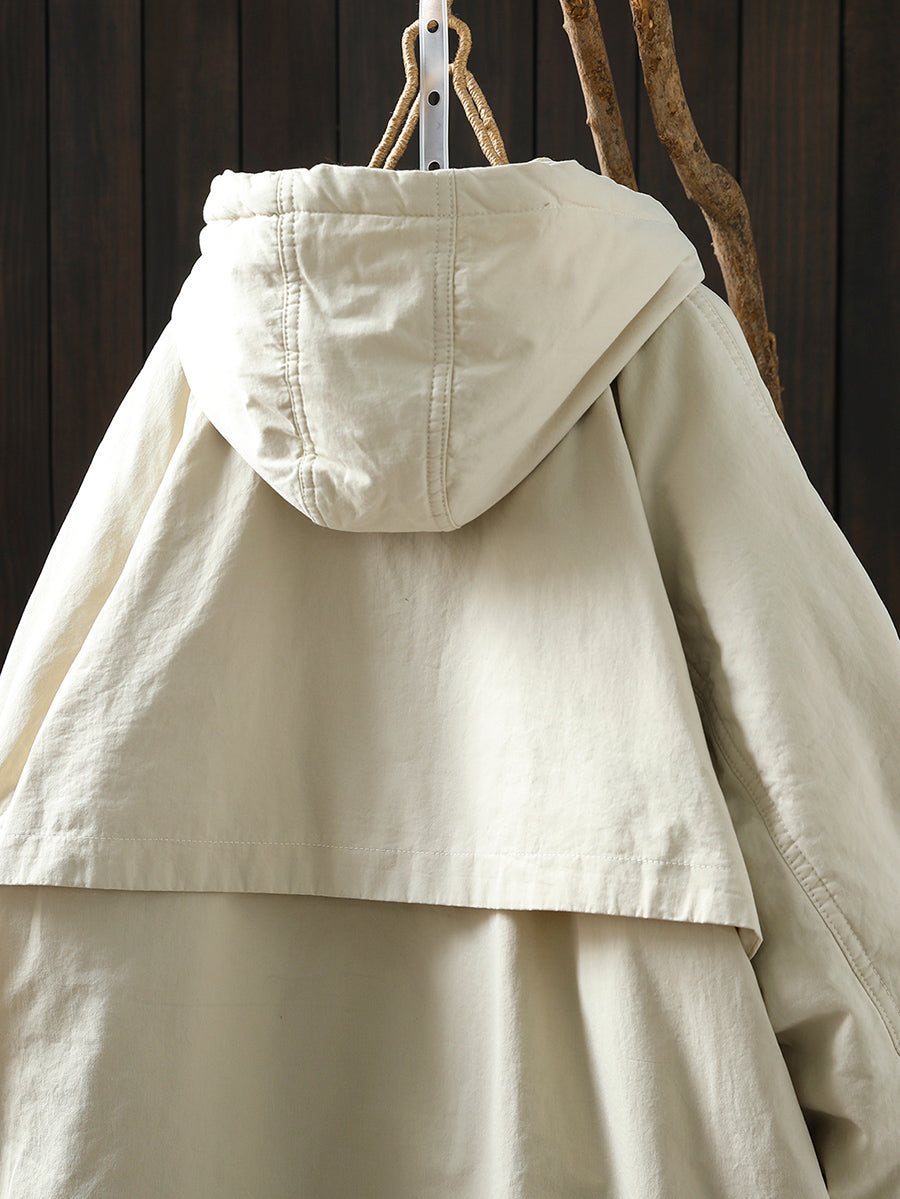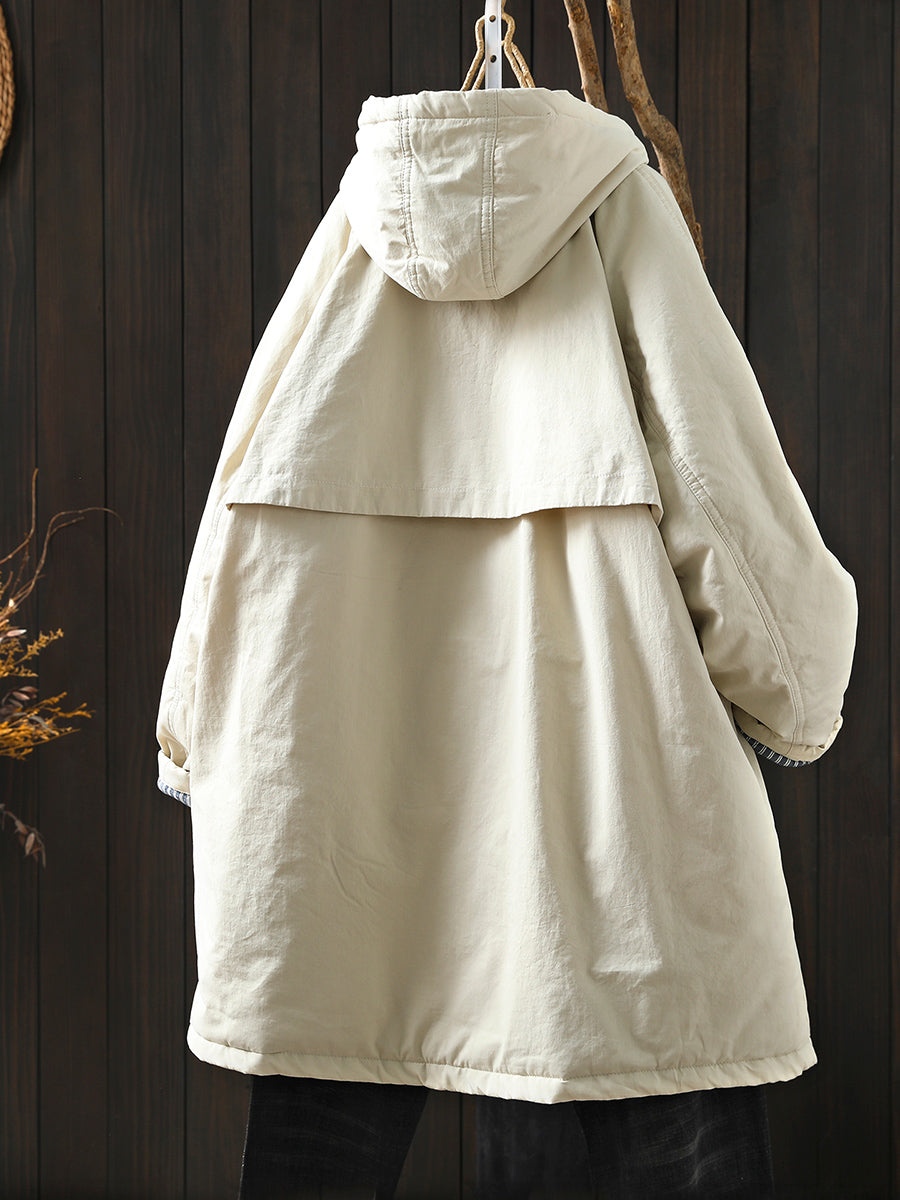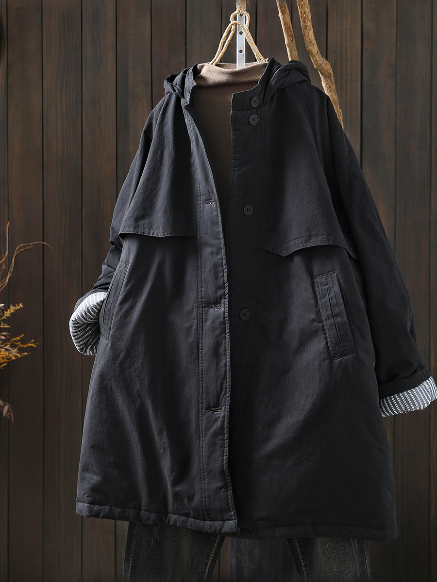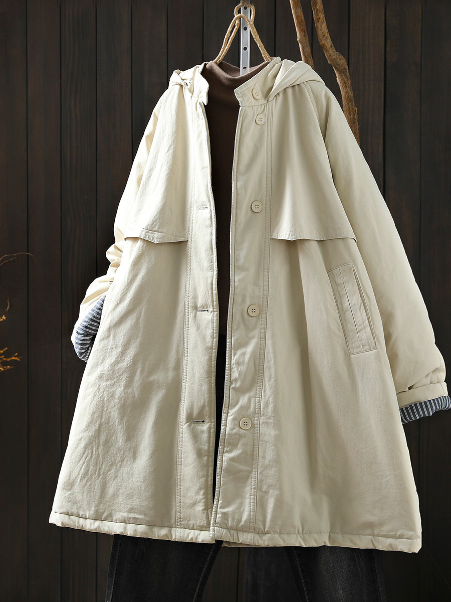 Women Winter Retro Pure Color Hooded Padded Coat