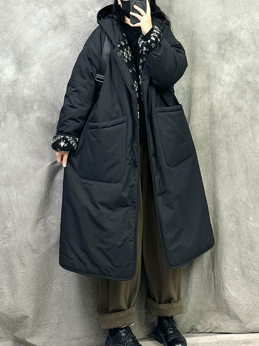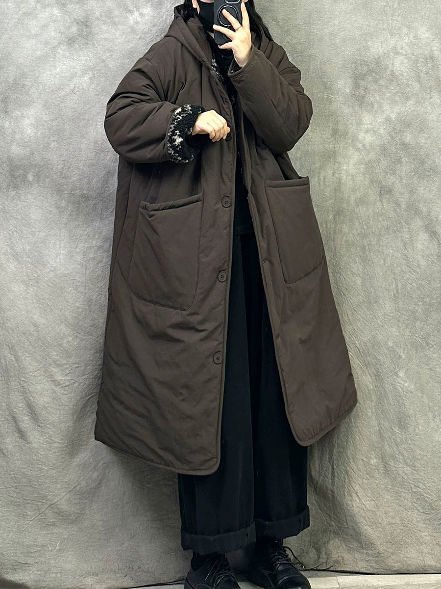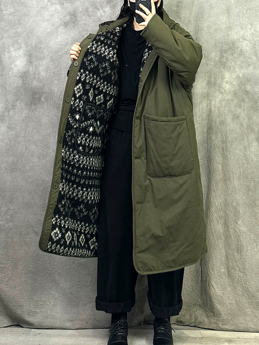 Women Winter Retro Two-side Wearing Hooded Padded Coat
