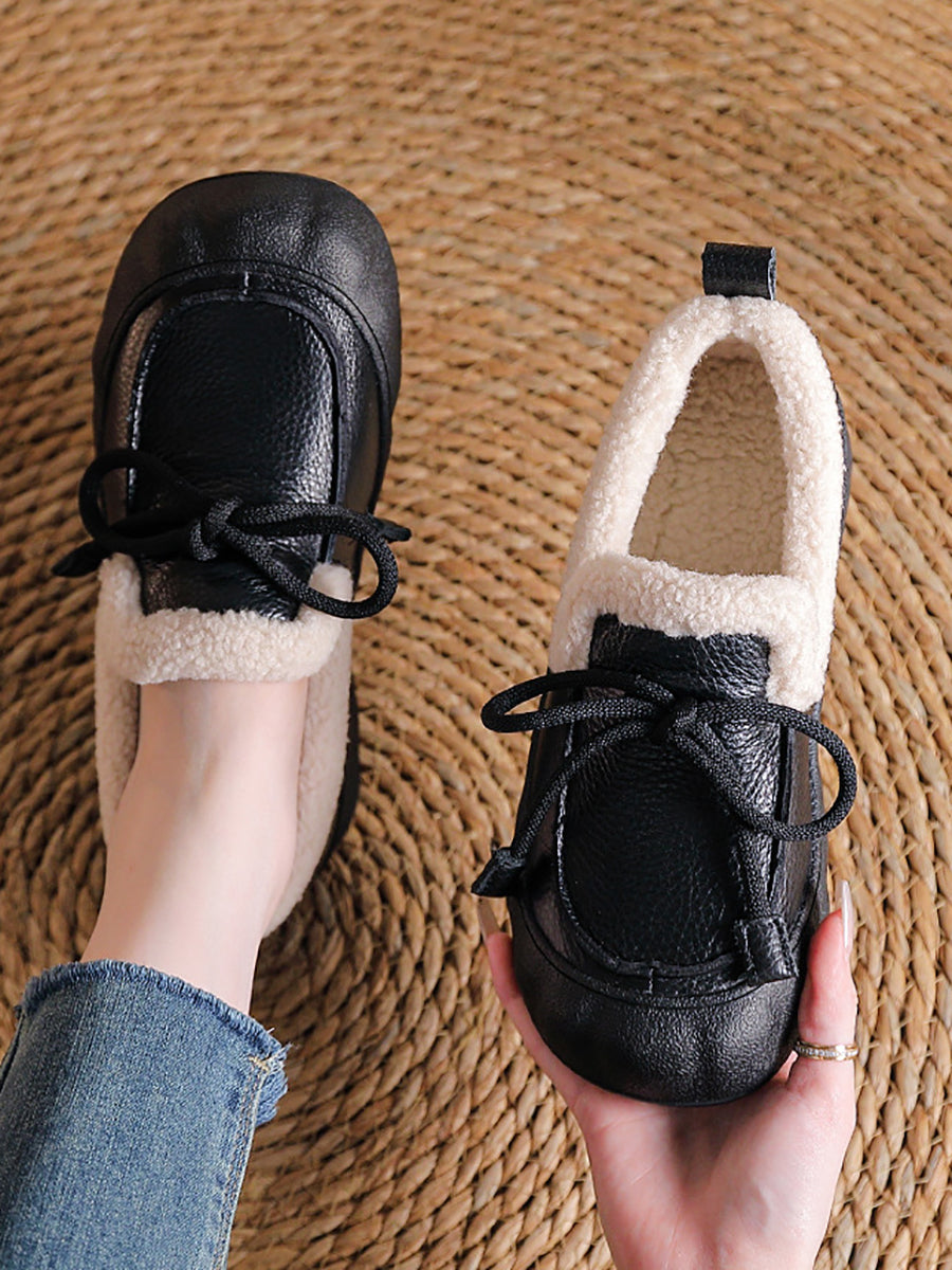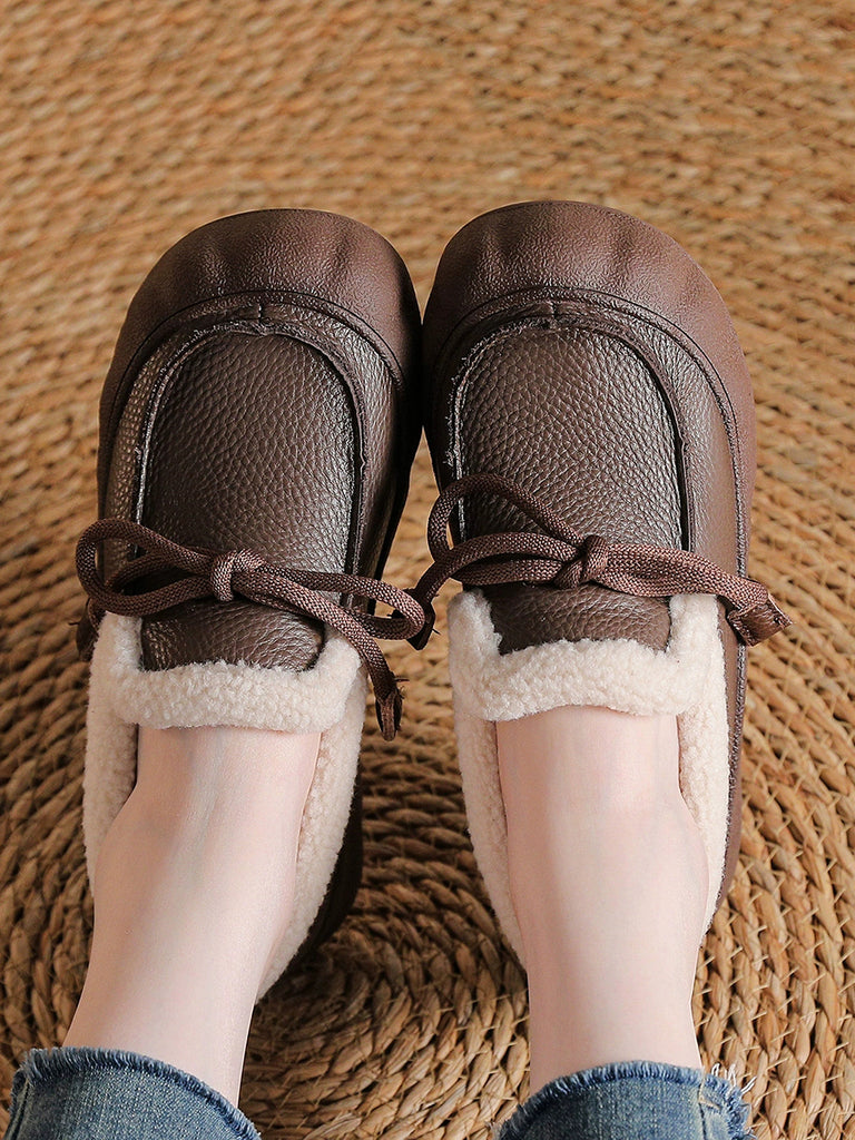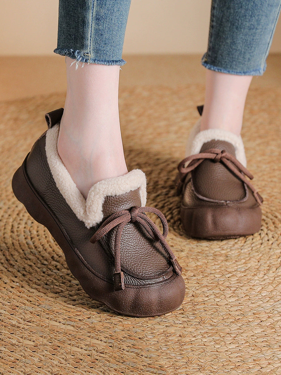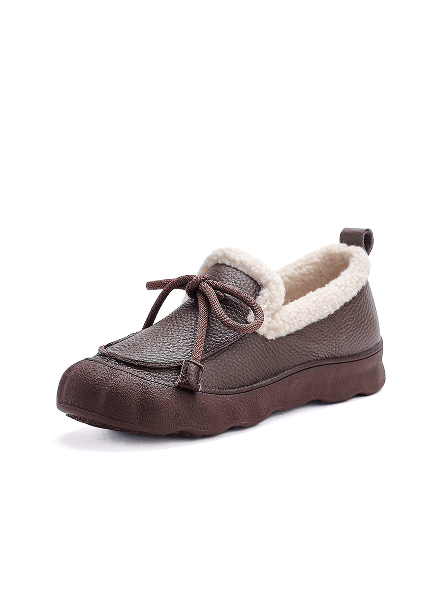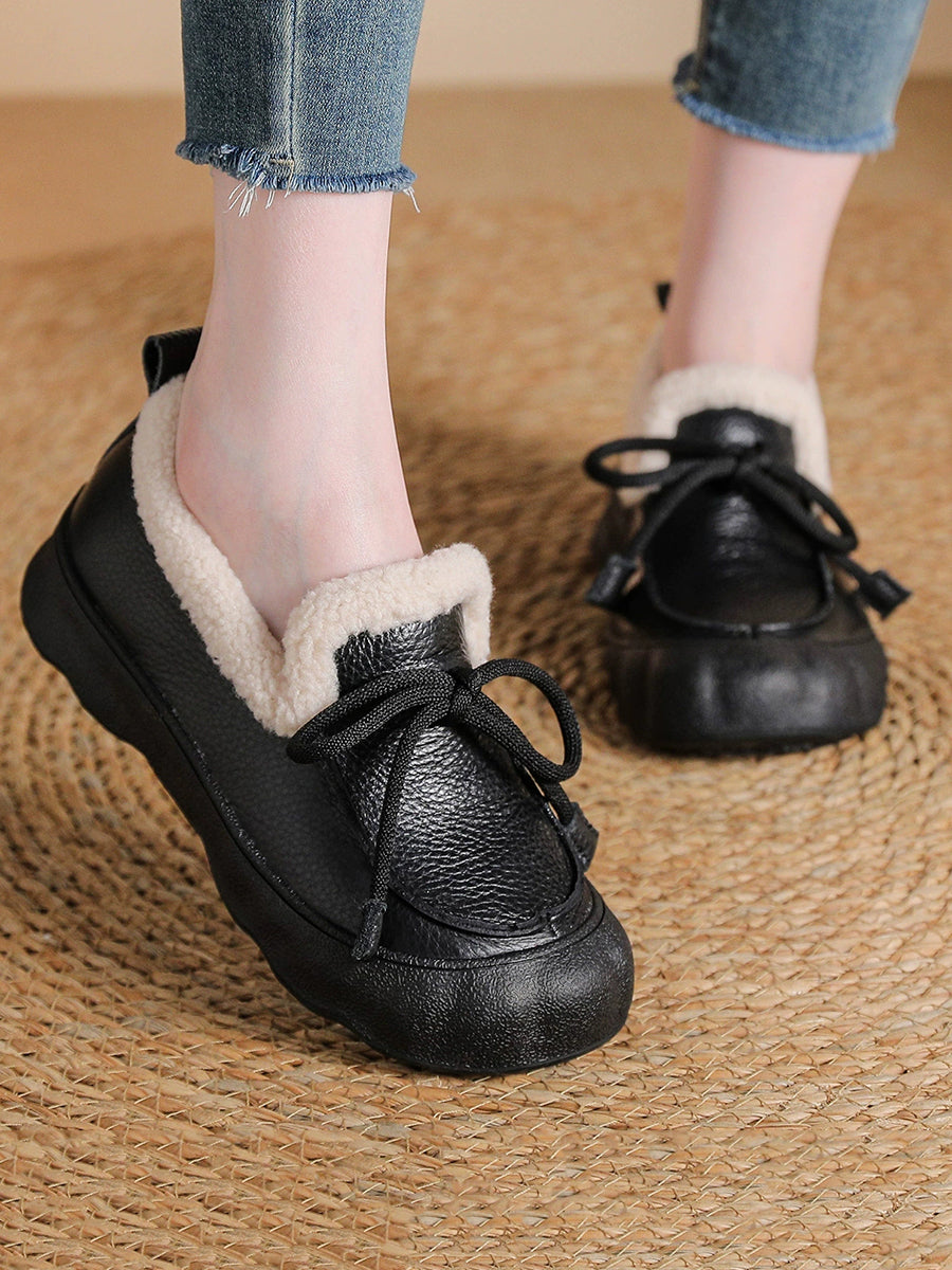 Women Winter Vintage Leather Fleece-lined Shoes