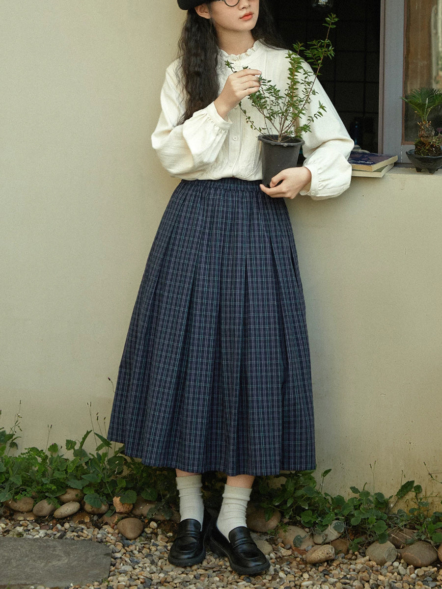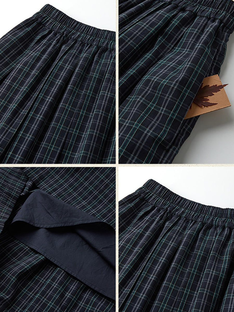 Women Winter Vintage Plaid Pleated A-Shape Skirt
